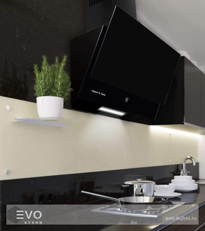 У вытяжки наклонной Zigmund & Shtain K 132.6 B имеется сенсорная панель управления и дисплей, с помощью которых удобно контролировать работу устройства. В зависимости от степени насыщенности запахов выбирается скорость очищения воздуха. Их у вытяжки три. Также есть таймер, что позволяет автоматически включать и выключать устройство. В случае работы вытяжки в режиме отвода, от запахов и насекомых из вентиляции защитит антивозвратный клапан, имеющийся в конструкции вытяжки. Для подсветки варочной поверхности в корпус вытяжки встроена светодиодная лампа.