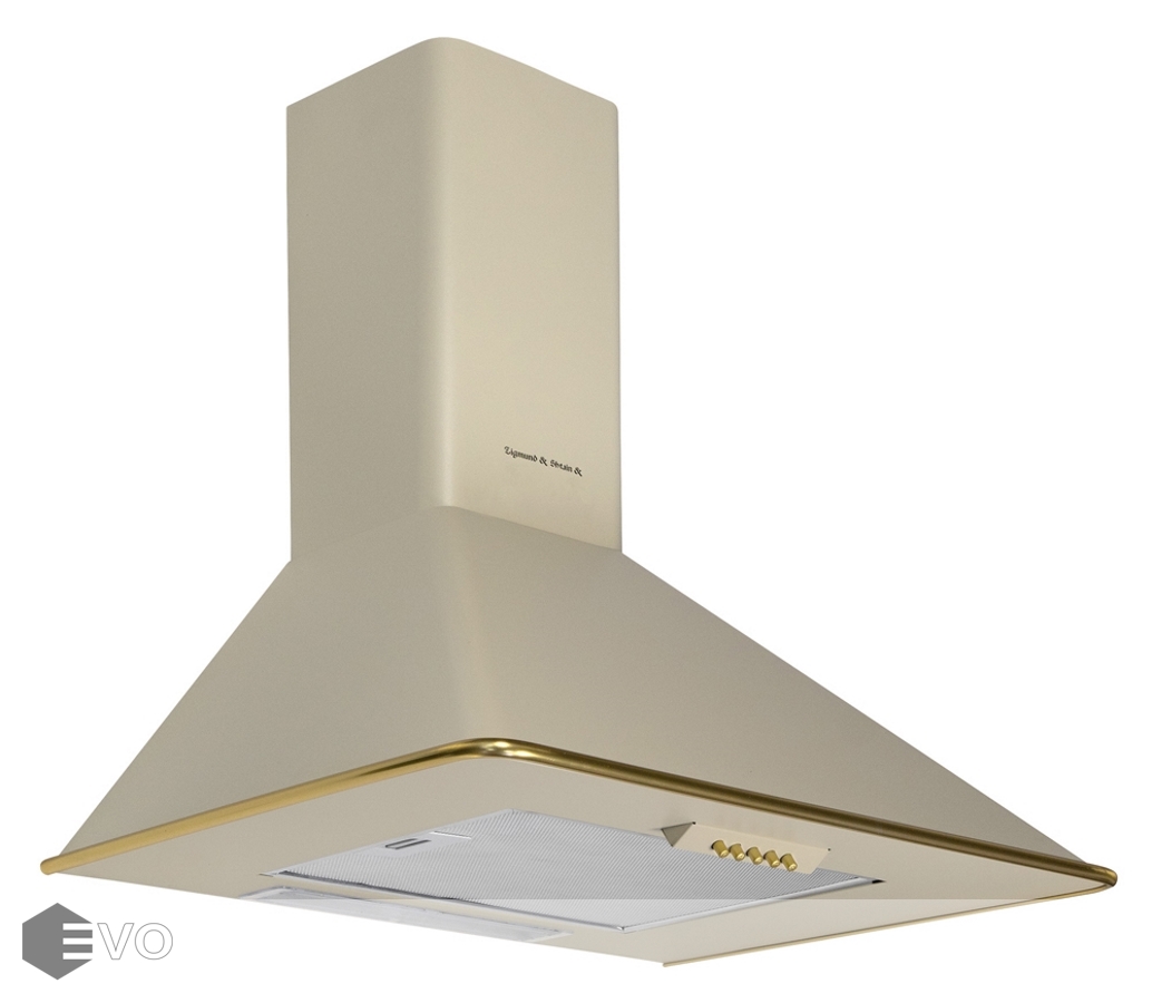 Вытяжка каминная Zigmund & Shtain K 138.6 X бежевого цвета выполнена в прочном металлическом корпусе и украшен золотистой окантовкой по периметру. Обладая производительностью 850 м³/ч, прибор подходит для работы в просторных помещениях.Три скоростных режима, соответствующие разной интенсивности воздуховыведения, помогут настроить вытяжку на максимально эффективную работу.