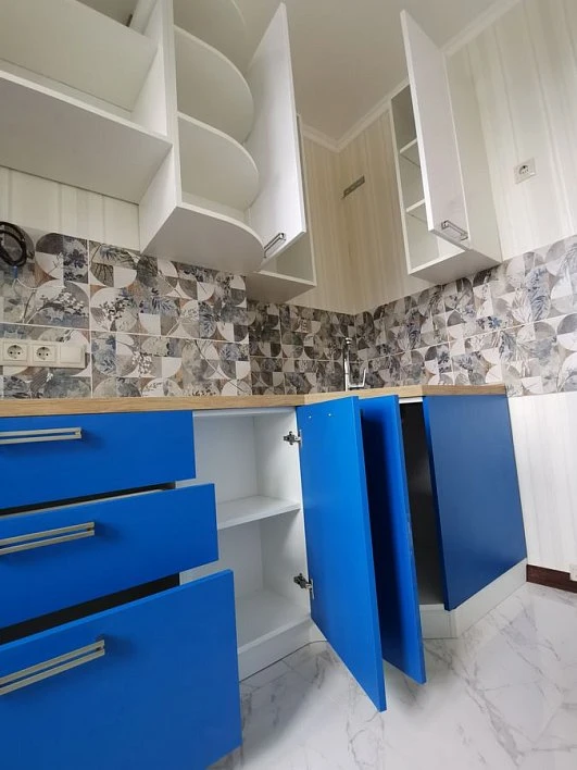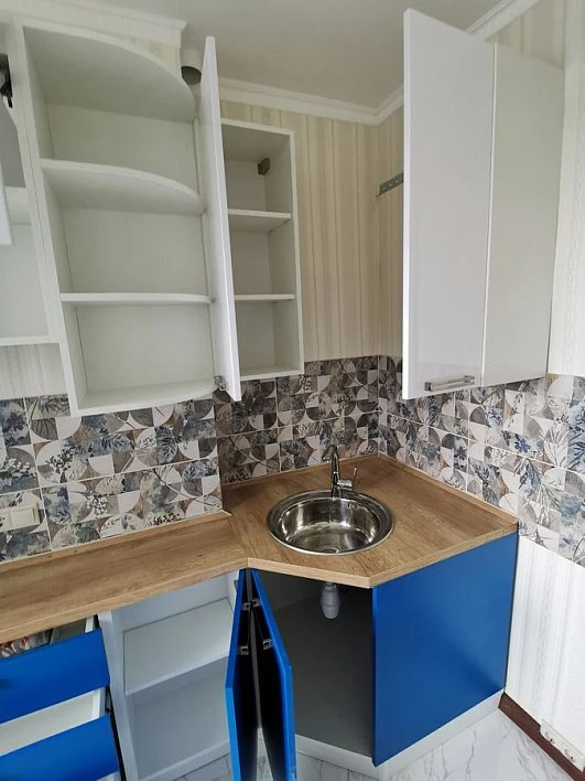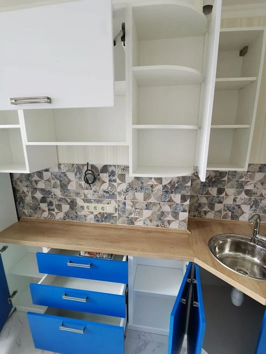 Кухни все изготавливаются по индивидуальному заказу. Мы подготовим дизайн-проект под любое помещение и конфигурацию. В зависимости от выбранных фасадов сможем изготовить нестандартные модули и размеры. Однако есть редкие исключения видов фасадов, по которым невозможны нестандарты, об этом вас предупредит дизайнер при выборе материалов для проекта.
