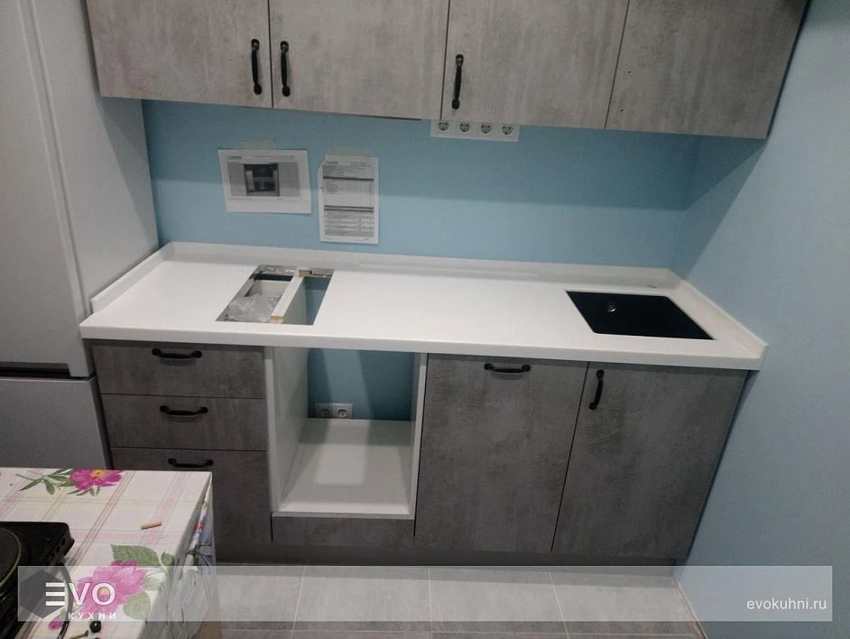 Кухни все изготавливаются по индивидуальному заказу. Мы подготовим дизайн-проект под любое помещение и конфигурацию. В зависимости от выбранных фасадов сможем изготовить нестандартные модули и размеры. Однако есть редкие исключения видов фасадов, по которым невозможны нестандарты, об этом вас предупредит дизайнер при выборе материалов для проекта.