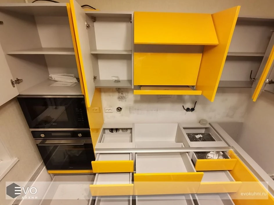 Кухни все изготавливаются по индивидуальному заказу. Мы подготовим дизайн-проект под любое помещение и конфигурацию. В зависимости от выбранных фасадов сможем изготовить нестандартные модули и размеры. Однако есть редкие исключения видов фасадов, по которым невозможны нестандарты, об этом вас предупредит дизайнер при выборе материалов для проекта.