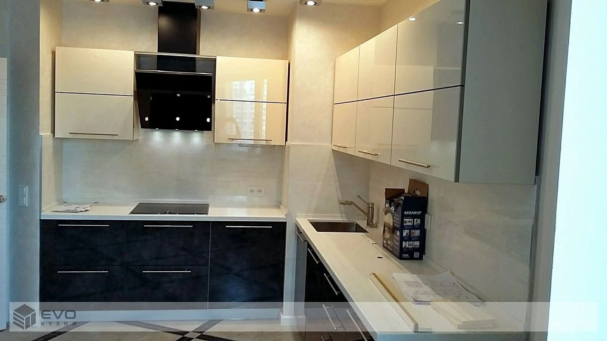 Угловая кухня хай-тек с порталом пластик/МДФ/ЛДСП