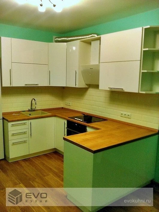 П-образная кухня модерн пластик/МДФ/ЛДСП