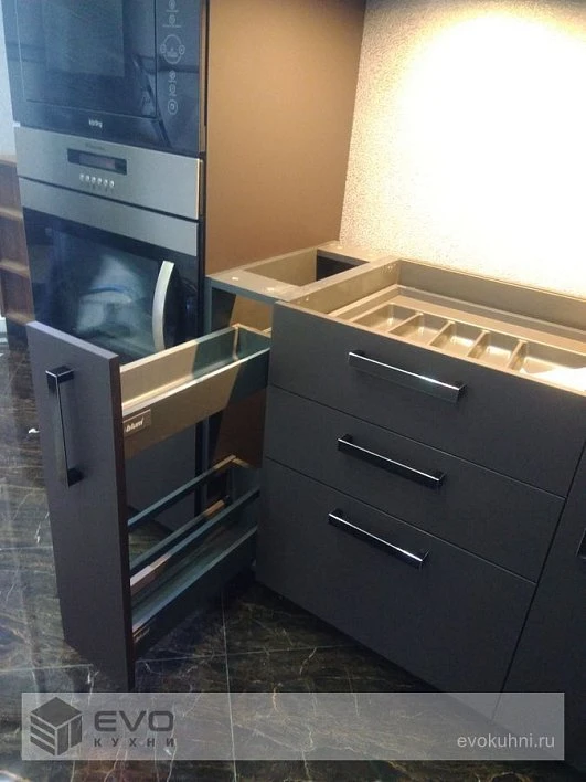 Кухня акрил серый графит матовый / Fenix Cacao Orinoco 0749 ЛМ200601