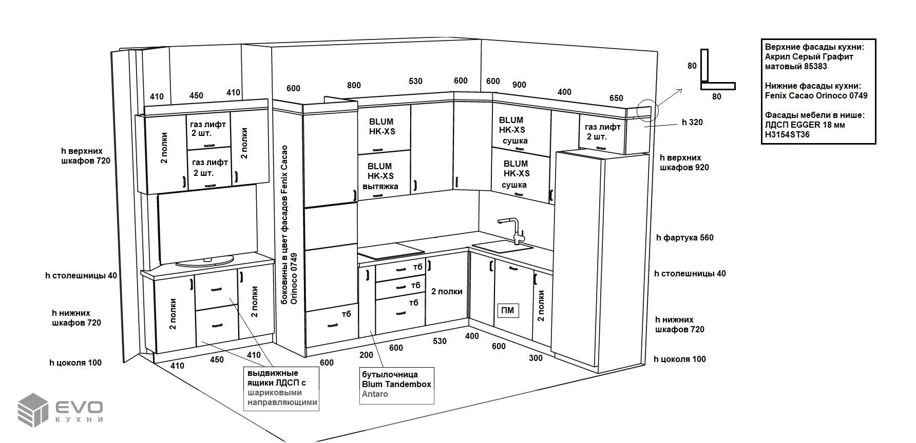 Кухни все изготавливаются по индивидуальному заказу. Мы подготовим дизайн-проект под любое помещение и конфигурацию. В зависимости от выбранных фасадов сможем изготовить нестандартные модули и размеры. Однако есть редкие исключения видов фасадов, по которым невозможны нестандарты, об этом вас предупредит дизайнер при выборе материалов для проекта.