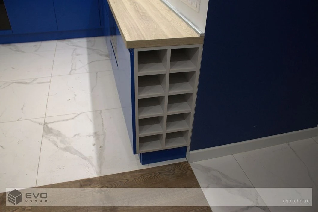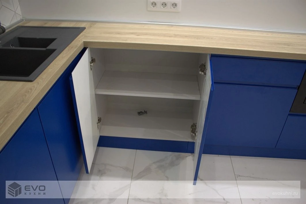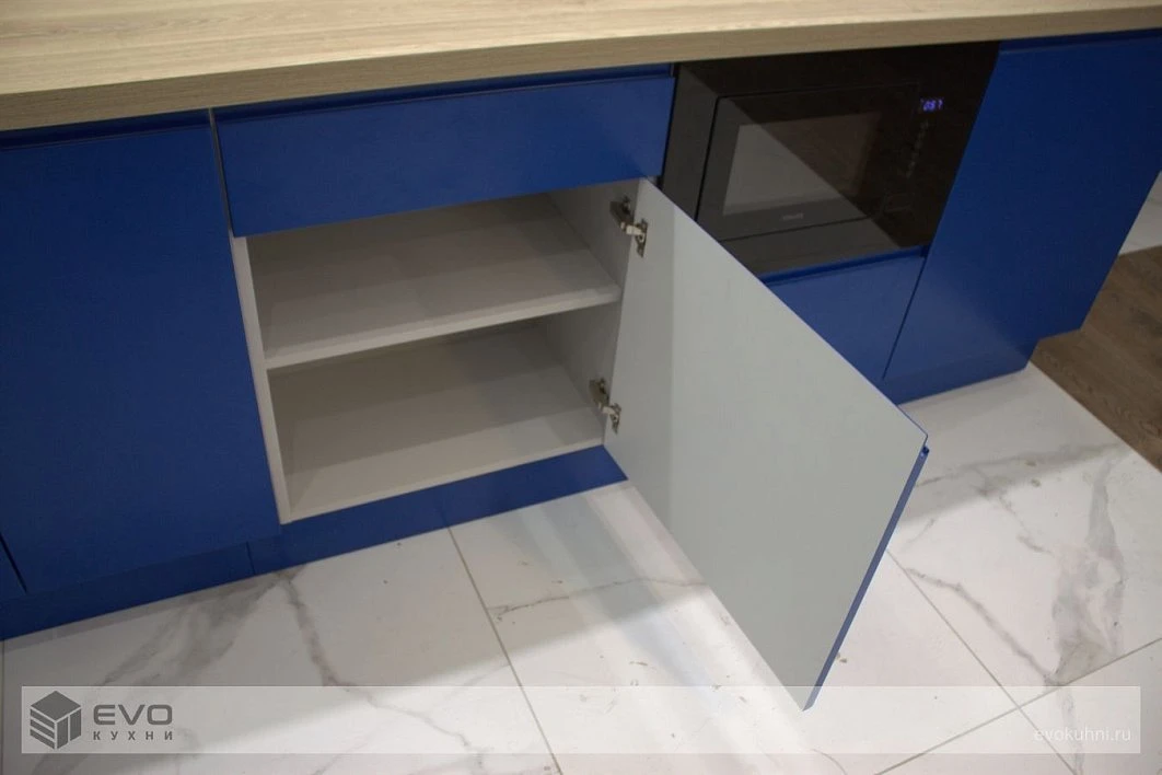 - Фасады: МДФ Эмаль матовая цвет NCS S 0502-G, МДФ Эмаль матовая цвет NCS S 4050-R90B.