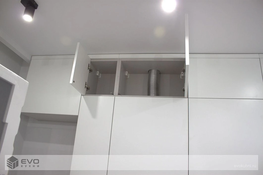 Функциональная кухня под потолок с интегрированными ручками в современном стиле.