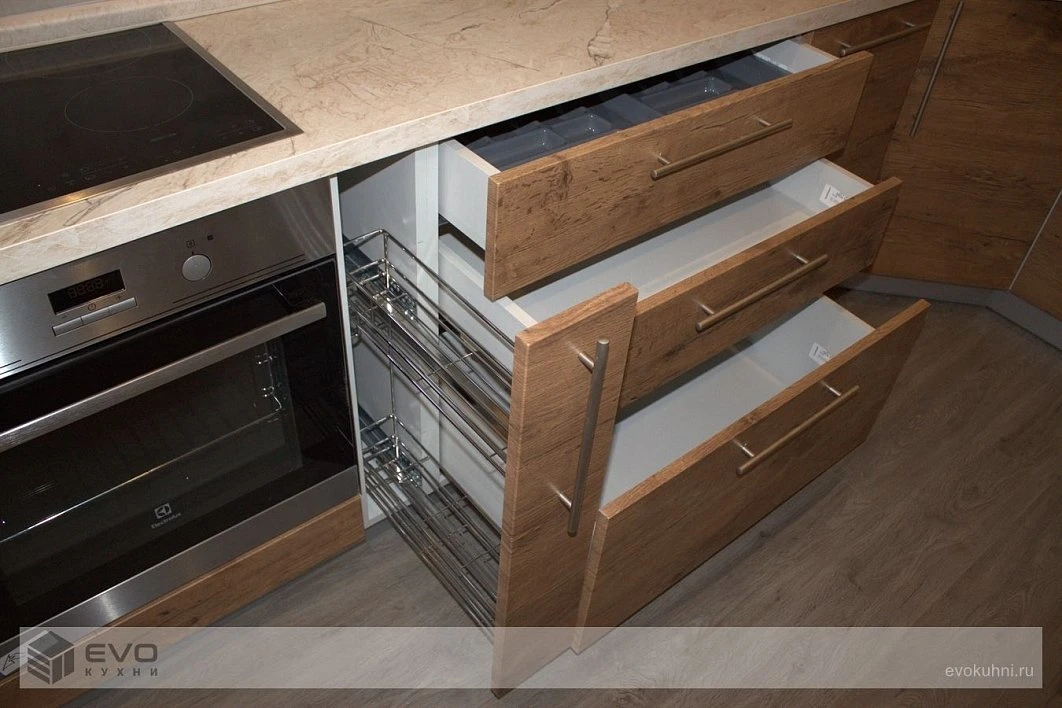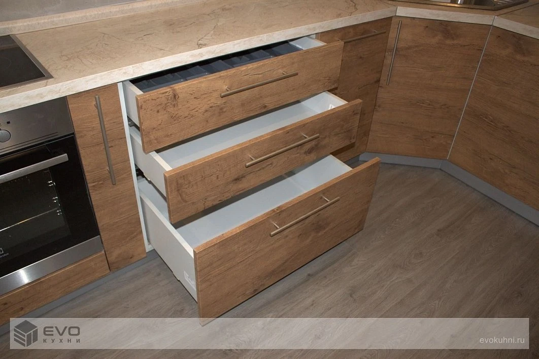 Кухни все изготавливаются по индивидуальному заказу. Мы подготовим дизайн-проект под любое помещение и конфигурацию. В зависимости от выбранных фасадов сможем изготовить нестандартные модули и размеры. Однако есть редкие исключения видов фасадов, по которым невозможны нестандарты, об этом вас предупредит дизайнер при выборе материалов для проекта.