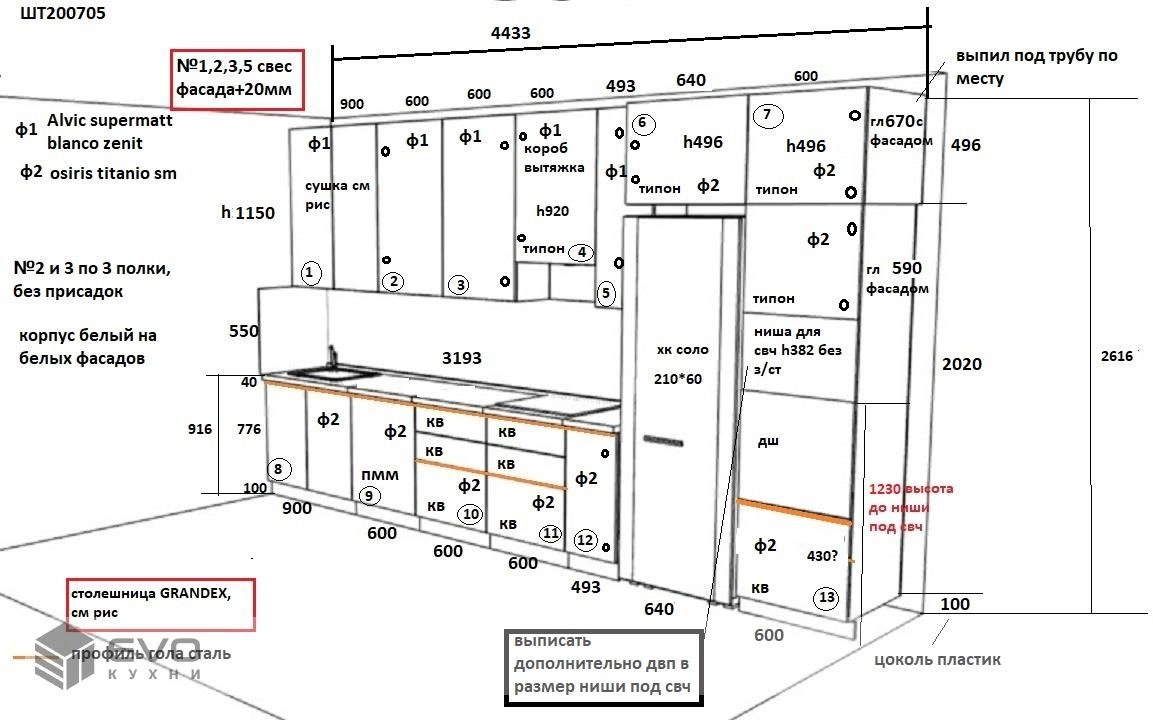 *в стоимость включено мебель, столешница искусственный камень, фурнитура, мойка, сушка, ручки Голо профиль. Замер, доставка и сборка .