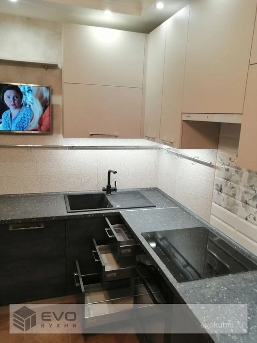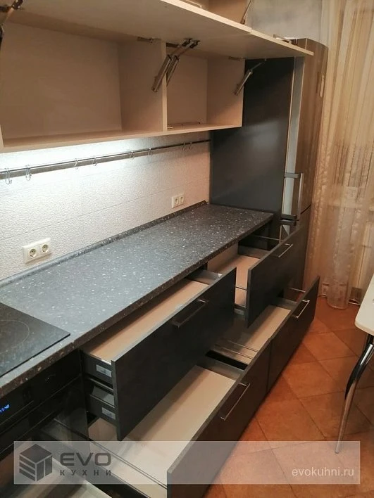 Кухни все изготавливаются по индивидуальному заказу. Мы подготовим дизайн-проект под любое помещение и конфигурацию. В зависимости от выбранных фасадов сможем изготовить нестандартные модули и размеры. Однако есть редкие исключения видов фасадов, по которым невозможны нестандарты, об этом вас предупредит дизайнер при выборе материалов для проекта.