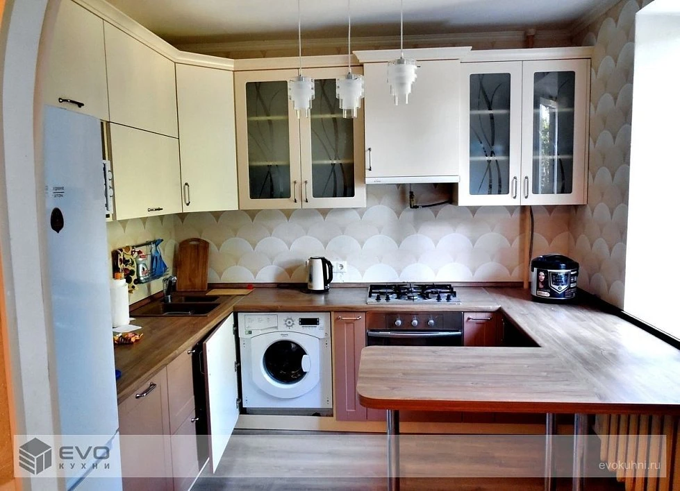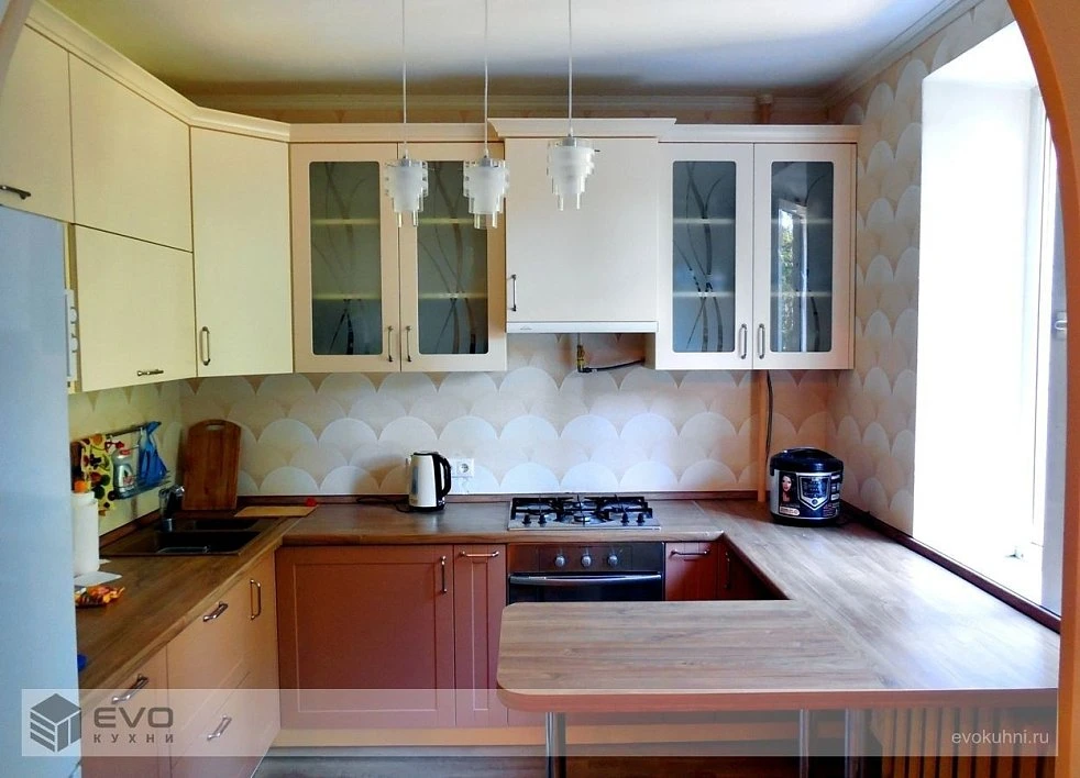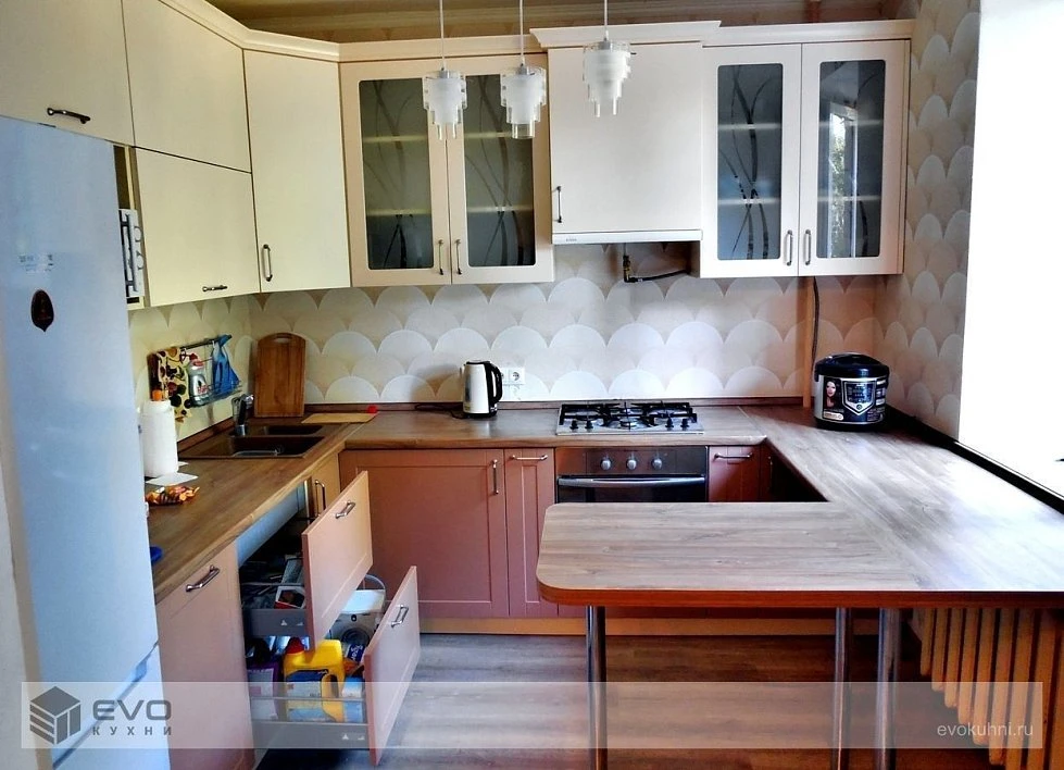 П-образная кухня модерн с барной стойкой Бостон эмаль/МДФ РК180208