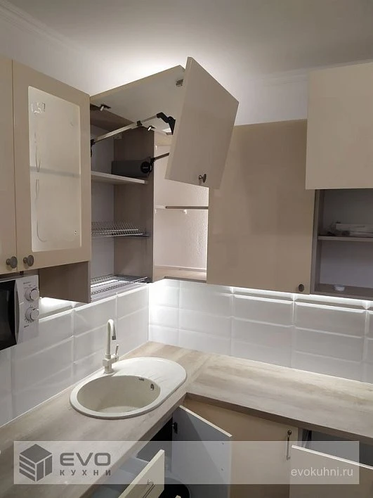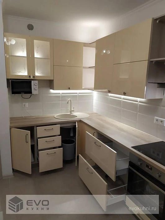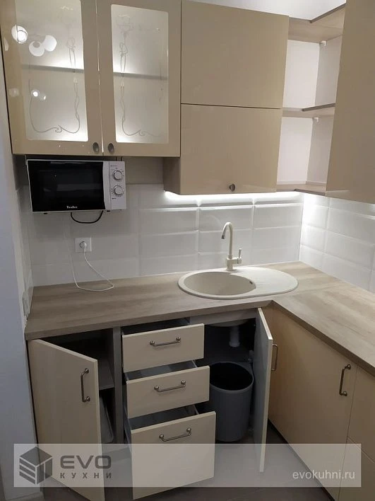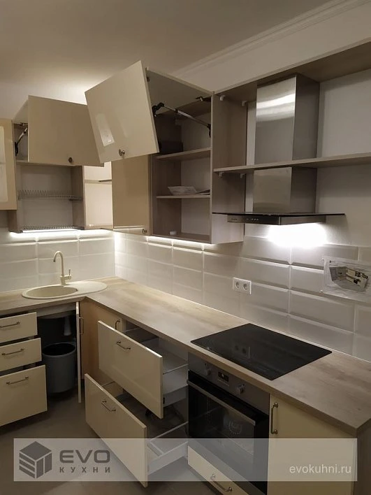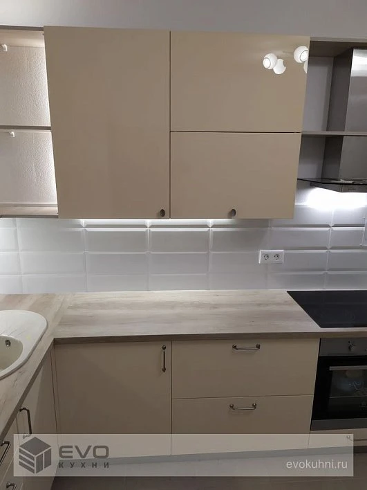 Кухни все изготавливаются по индивидуальному заказу. Мы подготовим дизайн-проект под любое помещение и конфигурацию. В зависимости от выбранных фасадов сможем изготовить нестандартные модули и размеры. Однако есть редкие исключения видов фасадов, по которым невозможны нестандарты, об этом вас предупредит дизайнер при выборе материалов для проекта.