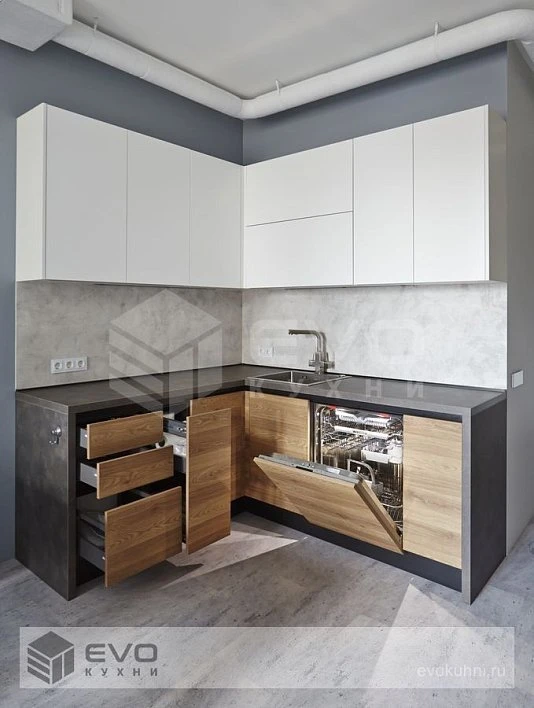 Угловая + прямая кухня модерн Smart/Criket пластик/МДФ РР190707