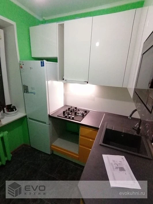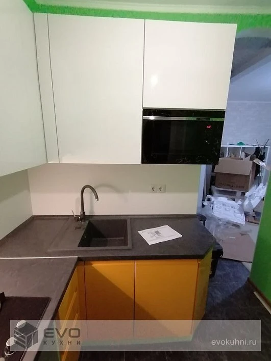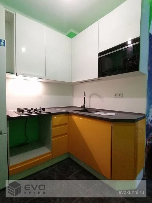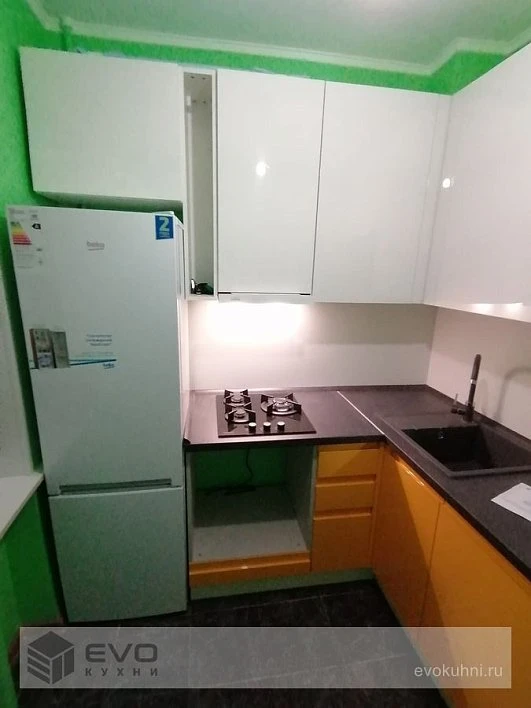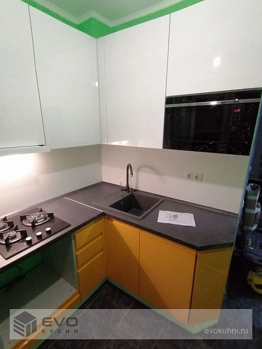 Кухня эмаль с интегрированной ручкой верх RAL9003 / RAL 1033 МС200801