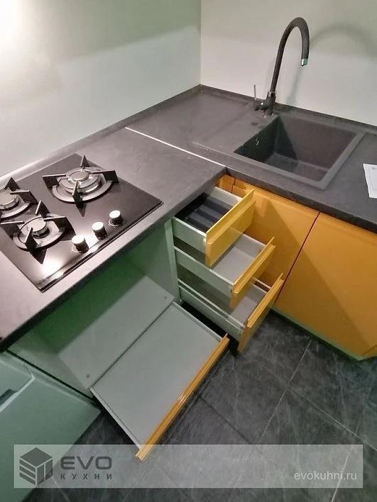 Кухни все изготавливаются по индивидуальному заказу. Мы подготовим дизайн-проект под любое помещение и конфигурацию. В зависимости от выбранных фасадов сможем изготовить нестандартные модули и размеры. Однако есть редкие исключения видов фасадов, по которым невозможны нестандарты, об этом вас предупредит дизайнер при выборе материалов для проекта.