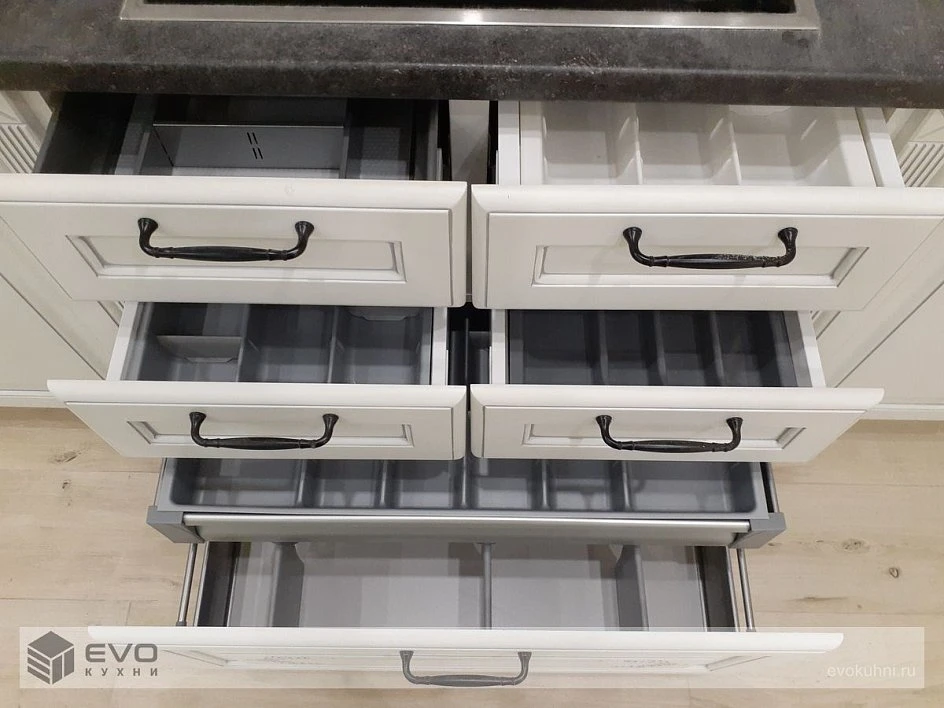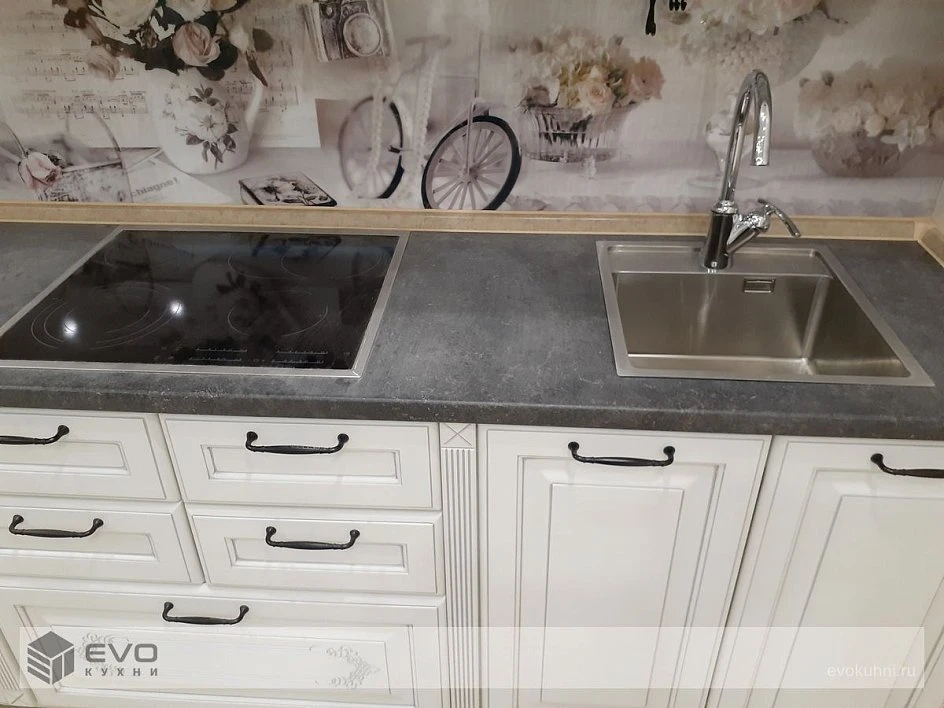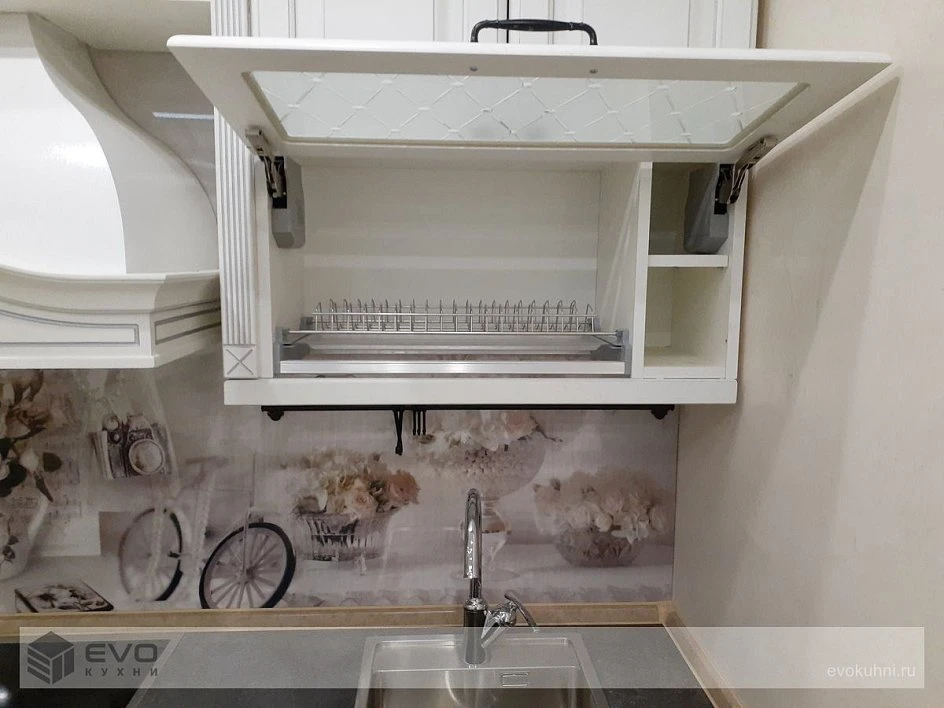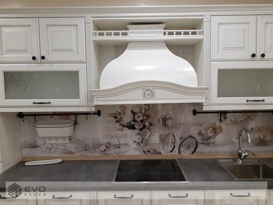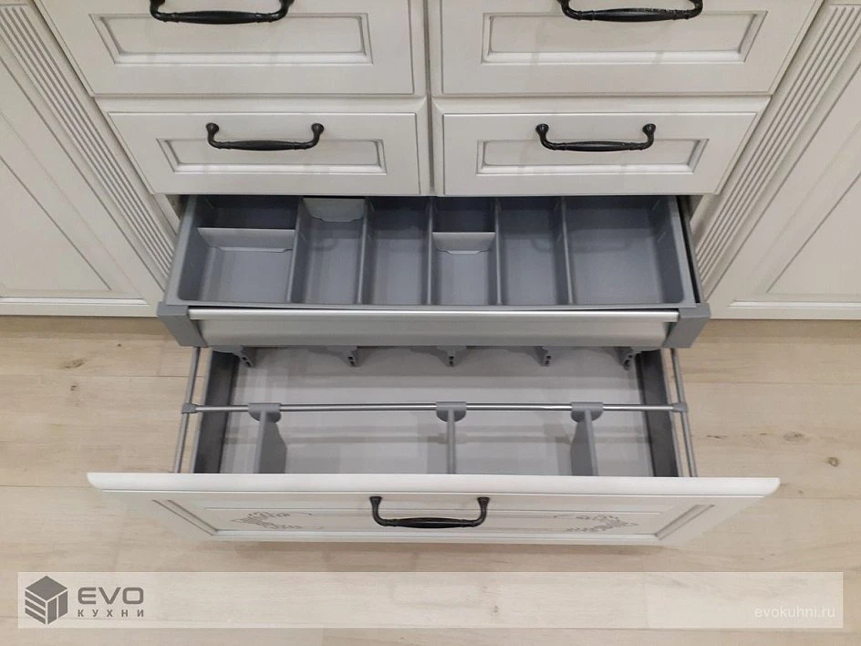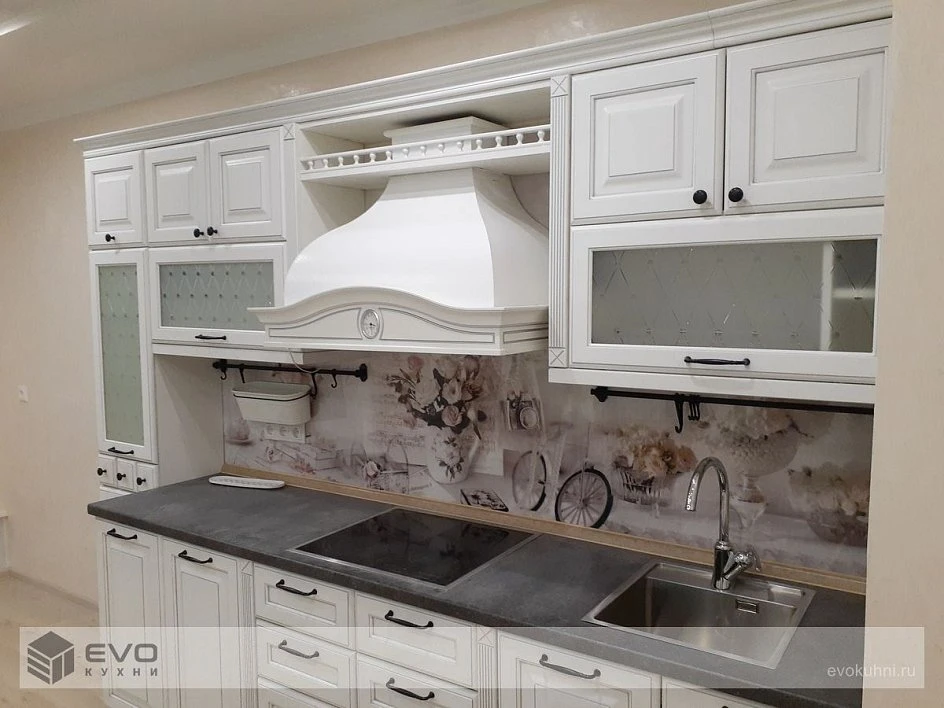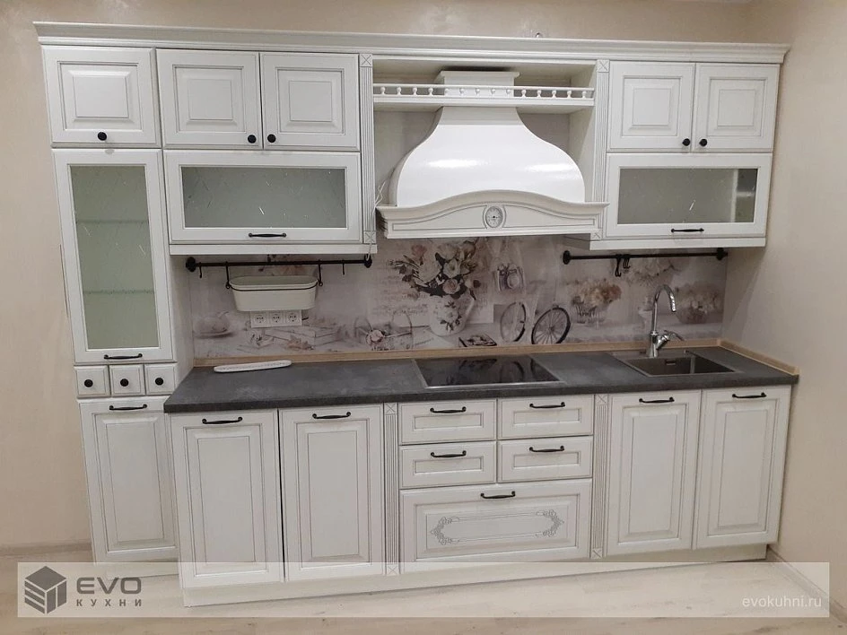 Прямая кухня классика Evropa эмаль/МДФ с патиной серебро РМ190901