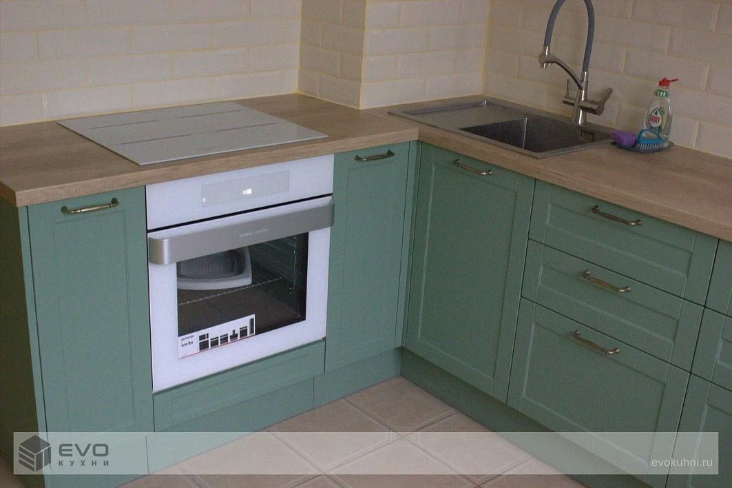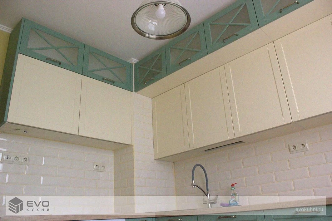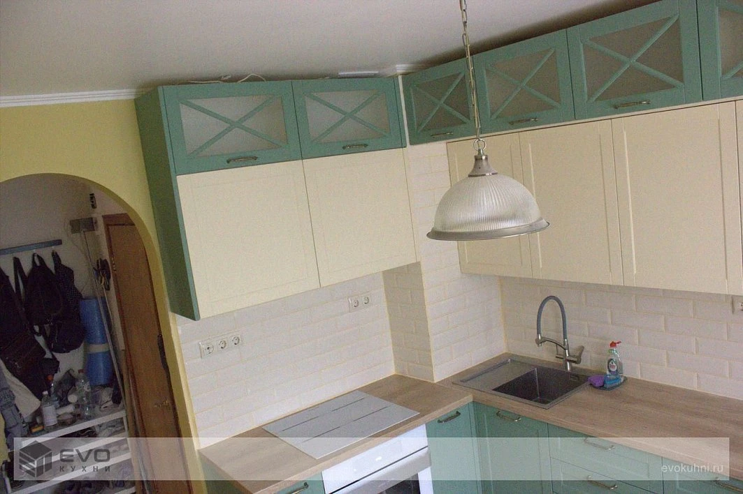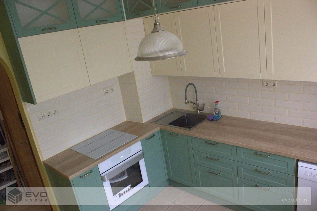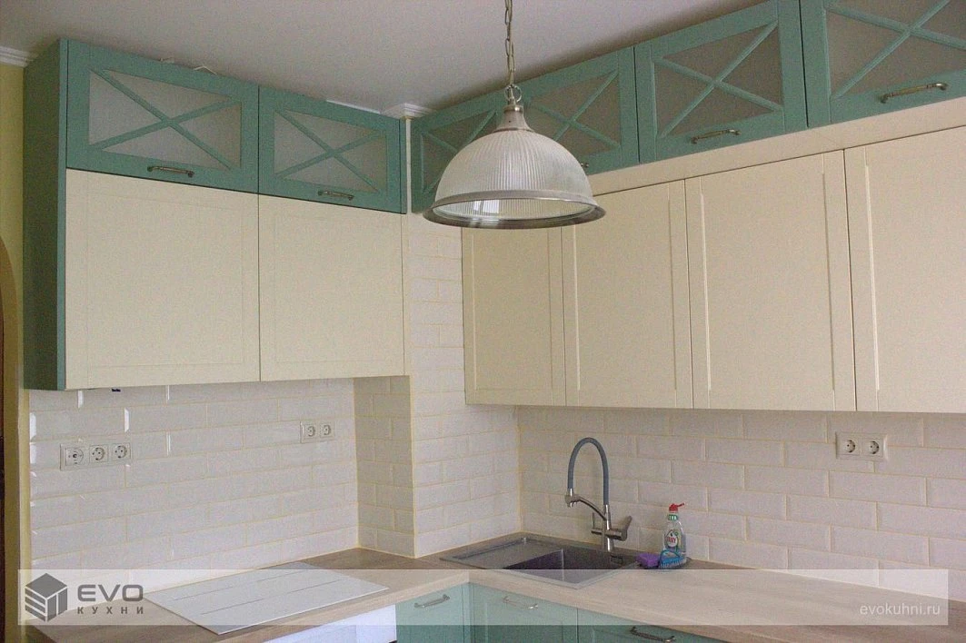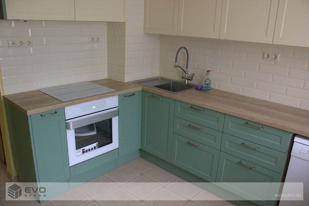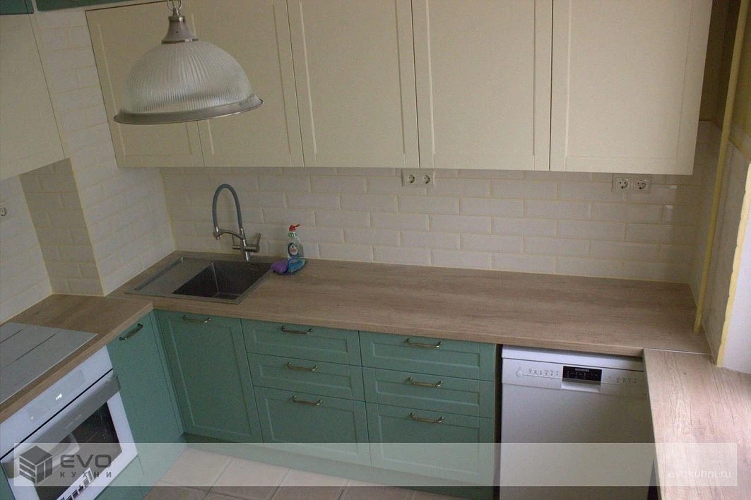 П-образная кухня фасад 3.9 пленка ПВХ мята / песок РИ200704