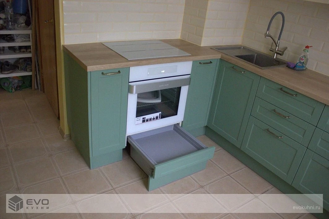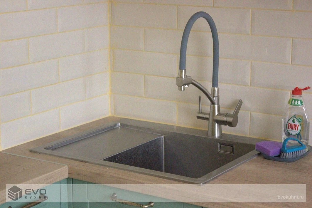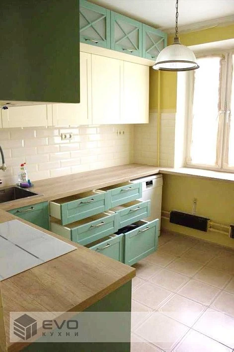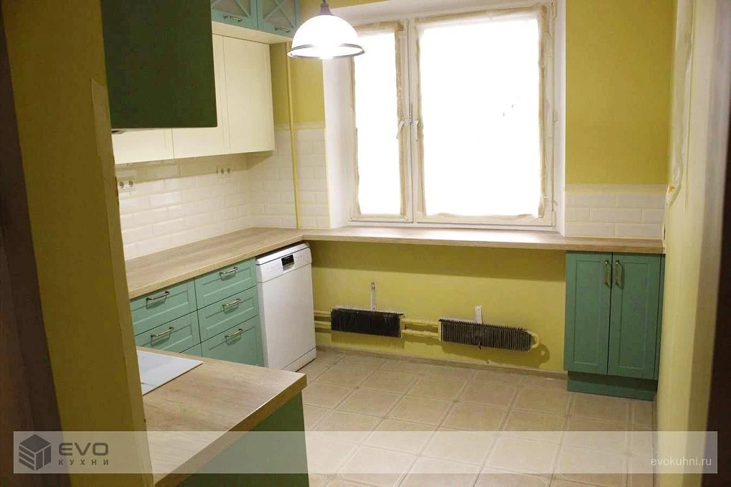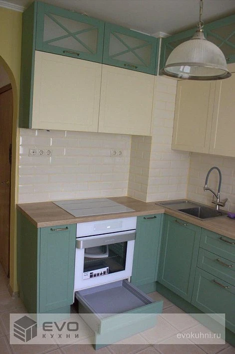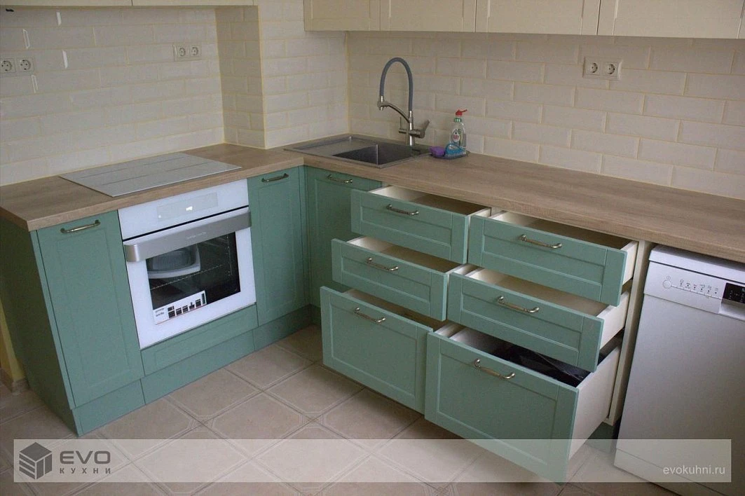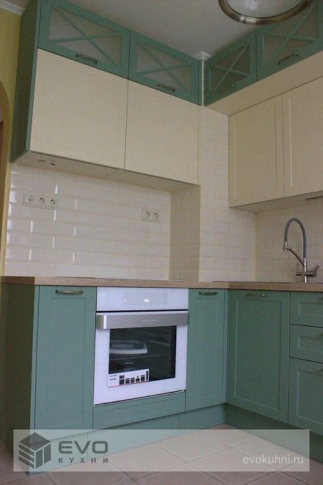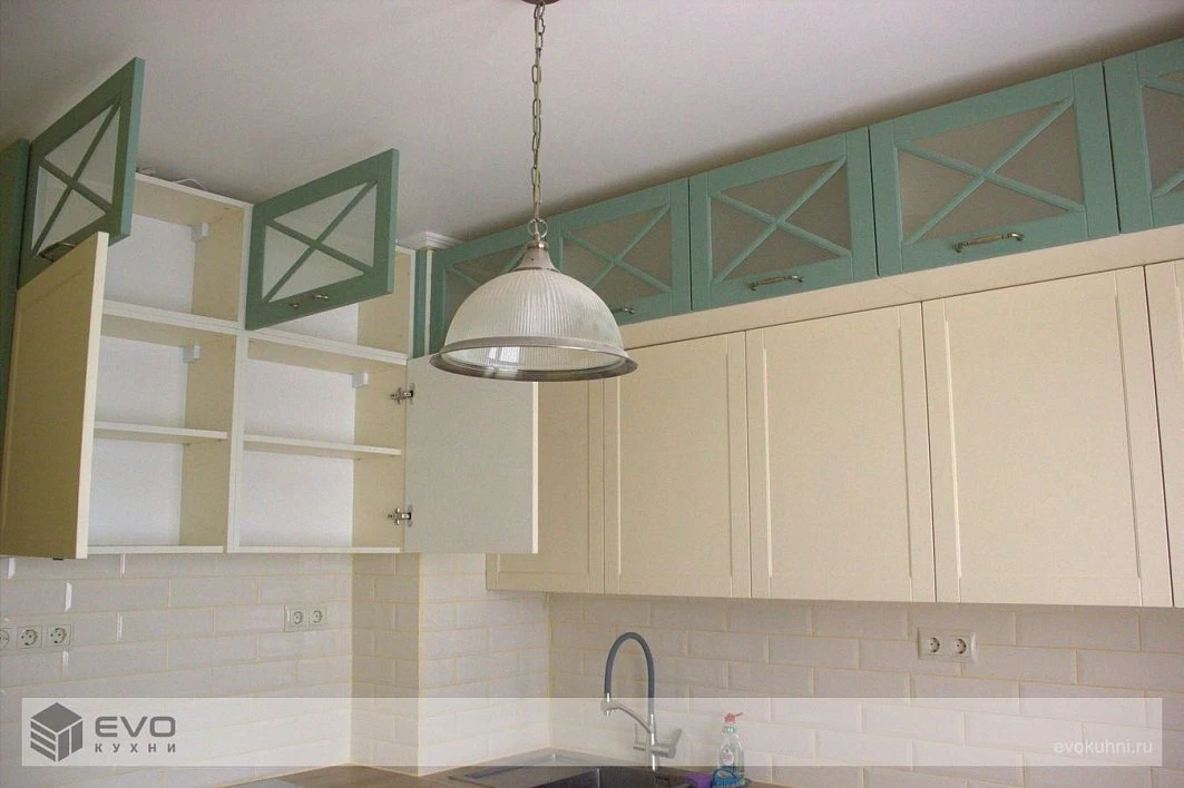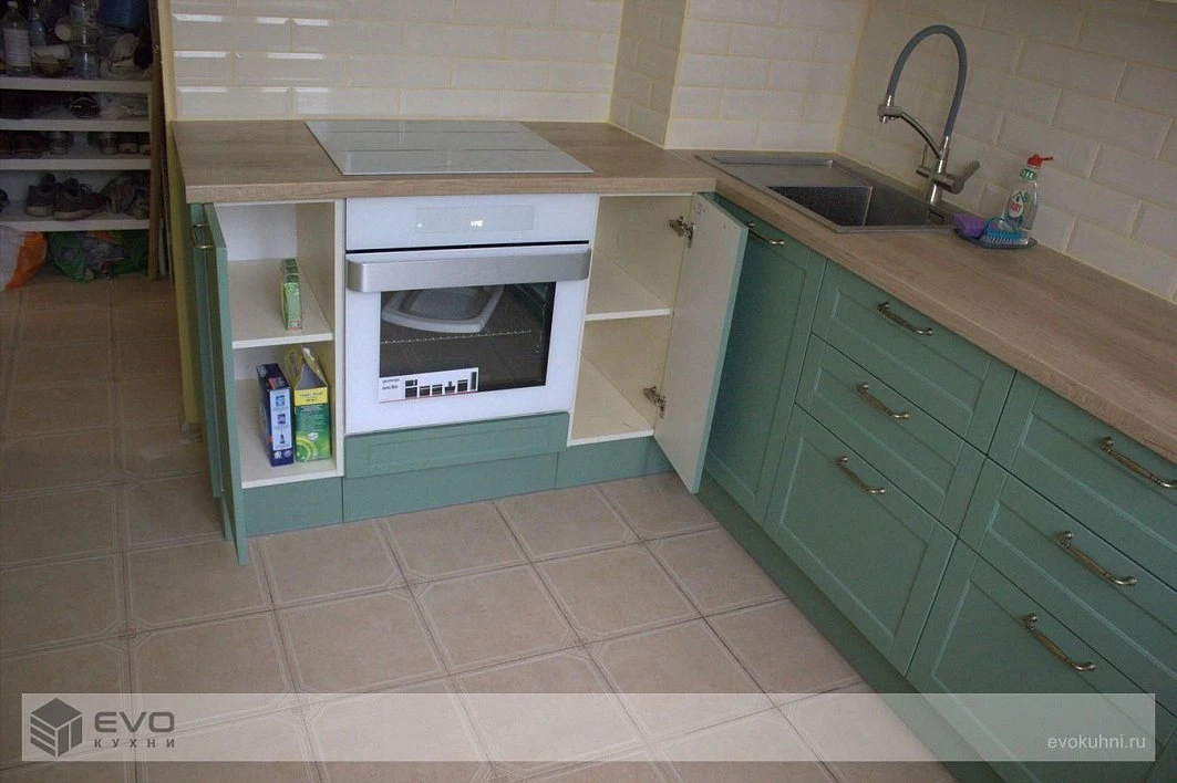 П-образная кухня фасад 3.9 пленка ПВХ мята / песок РИ200704