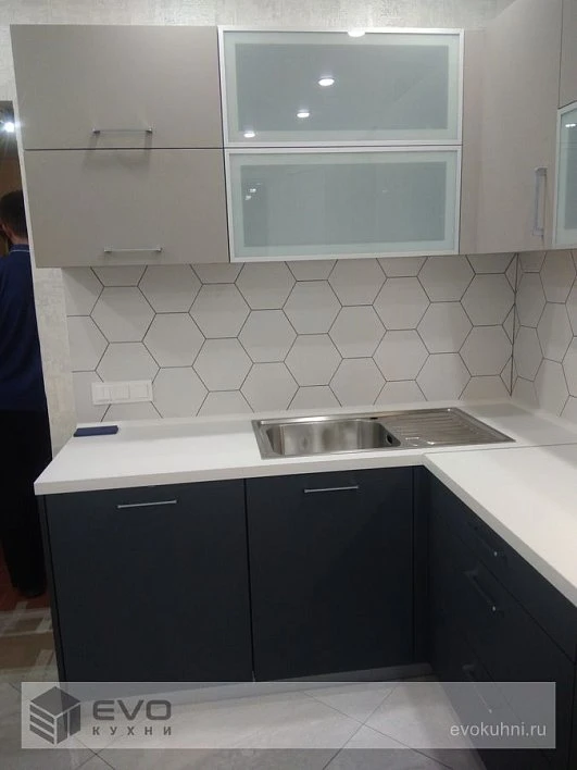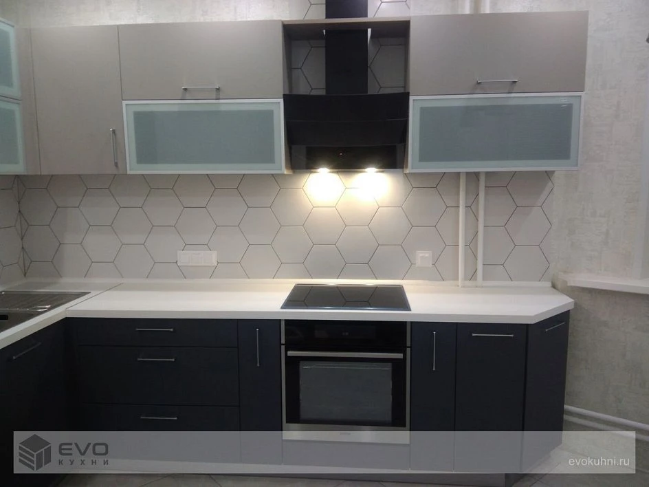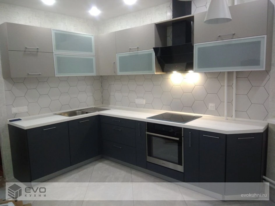 Угловая кухня модерн Fenix Beige/Grigio пластик/МДФ ИП191101