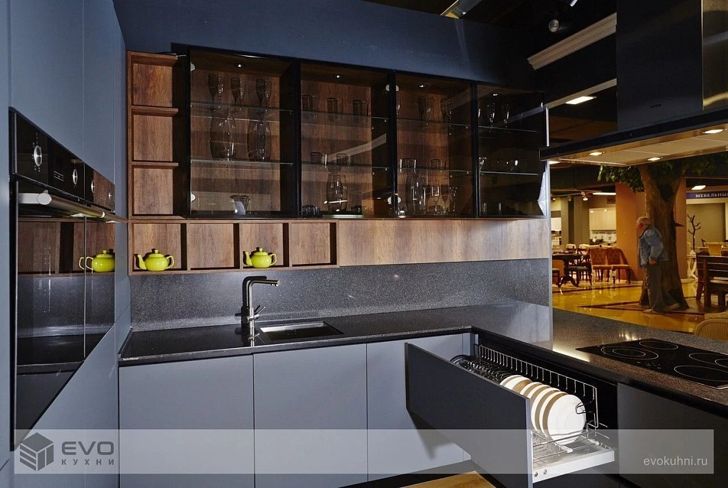 Кухни все изготавливаются по индивидуальному заказу. Мы подготовим дизайн-проект под любое помещение и конфигурацию. В зависимости от выбранных фасадов сможем изготовить нестандартные модули и размеры. Однако есть редкие исключения видов фасадов, по которым невозможны нестандарты, об этом вас предупредит дизайнер при выборе материалов для проекта.