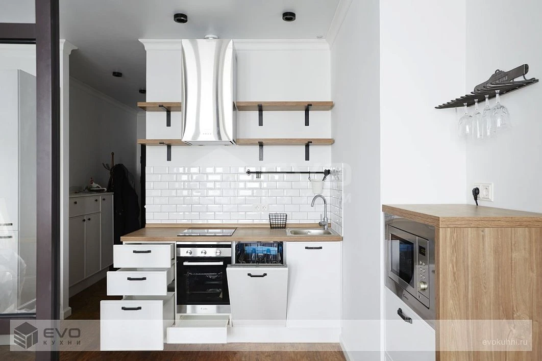 Кухни все изготавливаются по индивидуальному заказу. Мы подготовим дизайн-проект под любое помещение и конфигурацию. В зависимости от выбранных фасадов сможем изготовить нестандартные модули и размеры. Однако есть редкие исключения видов фасадов, по которым невозможны нестандарты, об этом вас предупредит дизайнер при выборе материалов для проекта.