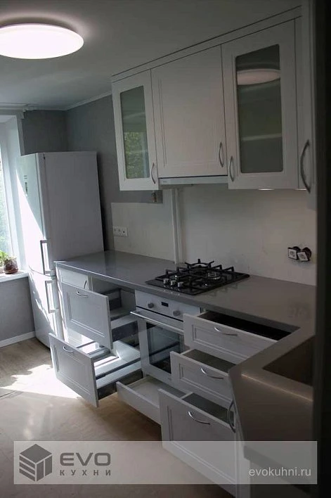 Кухни все изготавливаются по индивидуальному заказу. Мы подготовим дизайн-проект под любое помещение и конфигурацию. В зависимости от выбранных фасадов сможем изготовить нестандартные модули и размеры. Однако есть редкие исключения видов фасадов, по которым невозможны нестандарты, об этом вас предупредит дизайнер при выборе материалов для проекта.