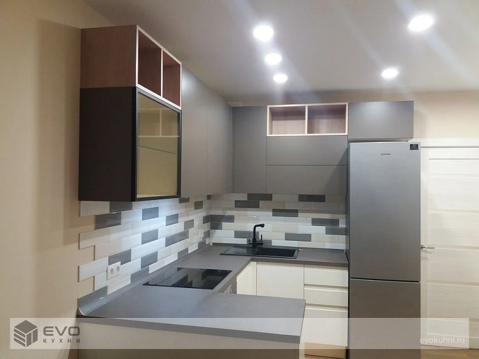 Кухни все изготавливаются по индивидуальному заказу. Мы подготовим дизайн-проект под любое помещение и конфигурацию. В зависимости от выбранных фасадов сможем изготовить нестандартные модули и размеры. Однако есть редкие исключения видов фасадов, по которым невозможны нестандарты, об этом вас предупредит дизайнер при выборе материалов для проекта.