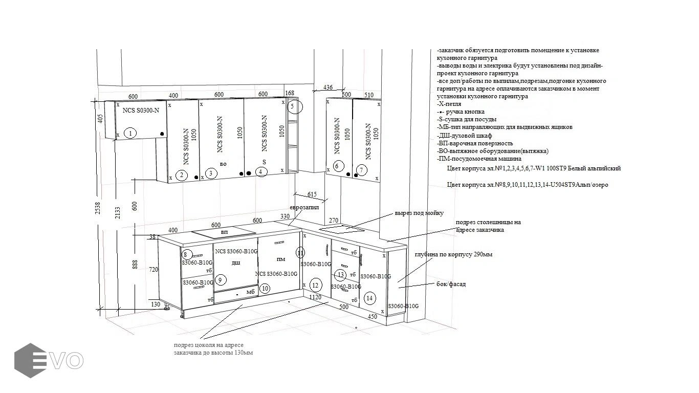 - Особенности: Изготовление кухни под любую высоту, покраска в любой цвет по раскладкам RAL и NCS в матовом и глянцевом исполнении.