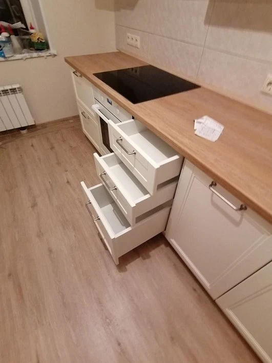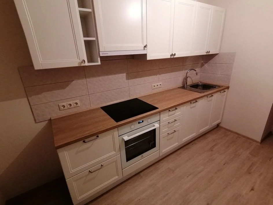 Кухни все изготавливаются по индивидуальному заказу. Мы подготовим дизайн-проект под любое помещение и конфигурацию. В зависимости от выбранных фасадов сможем изготовить нестандартные модули и размеры. Однако есть редкие исключения видов фасадов, по которым невозможны нестандарты, об этом вас предупредит дизайнер при выборе материалов для проекта.