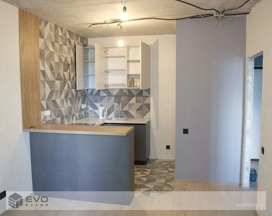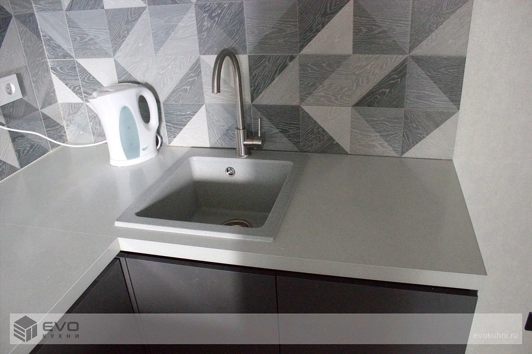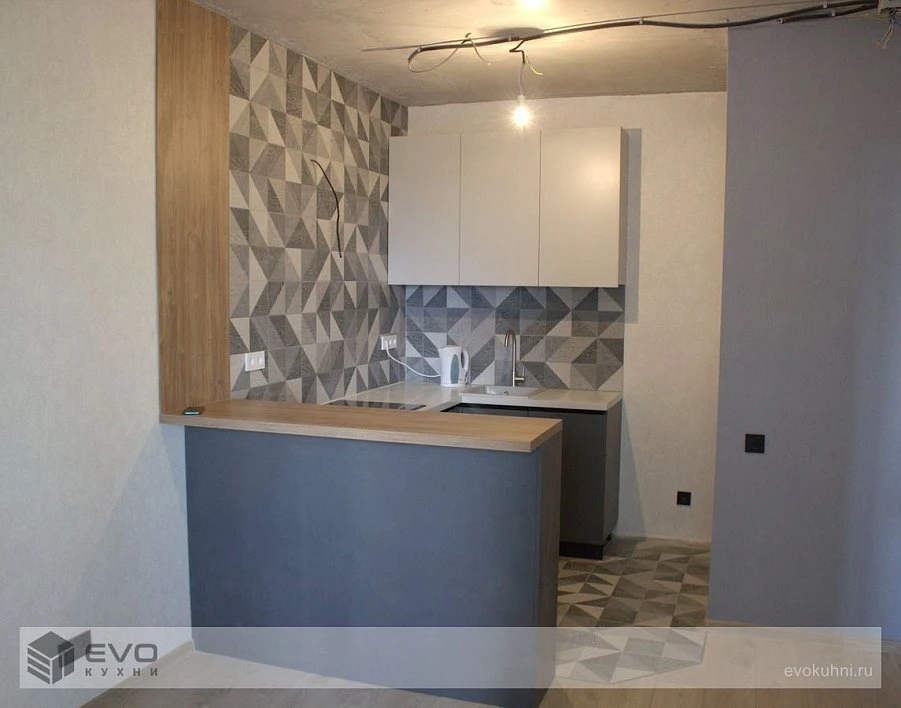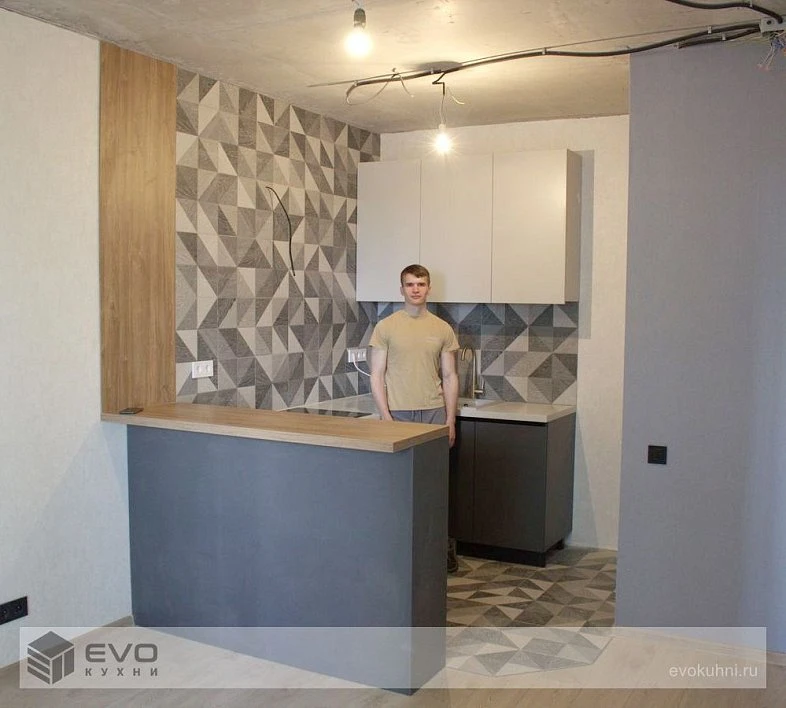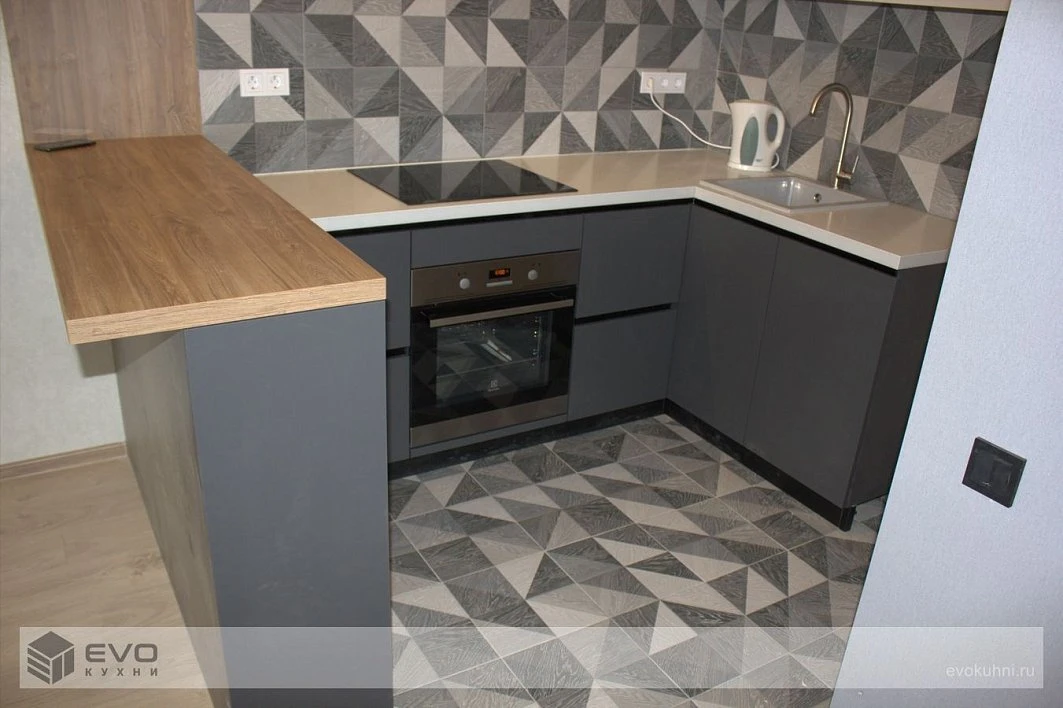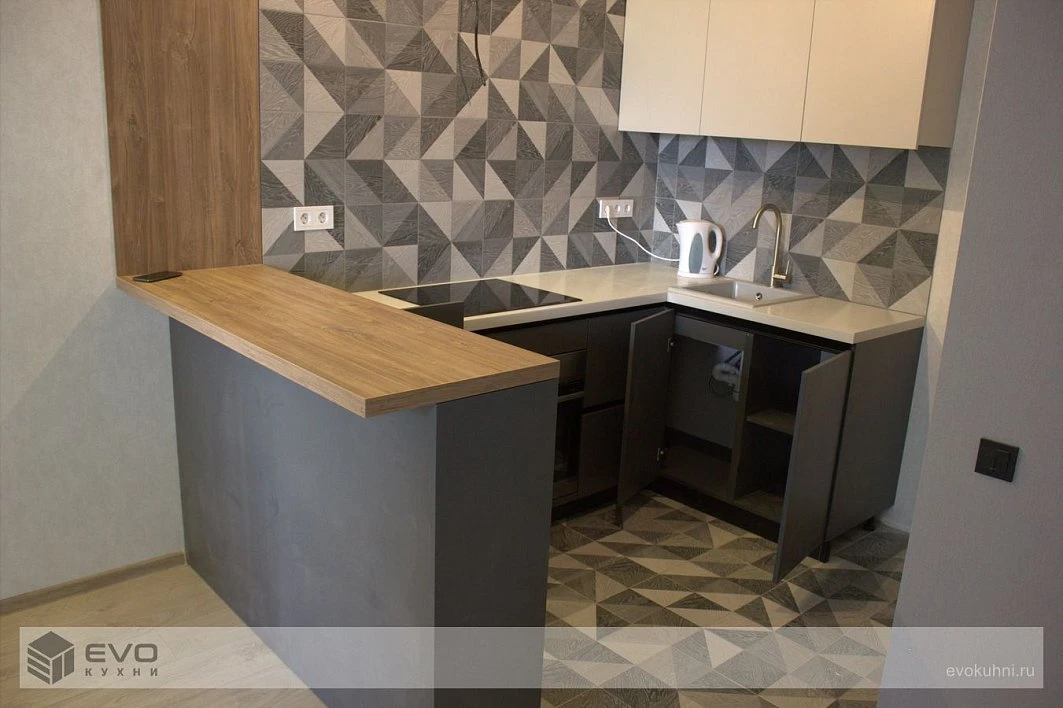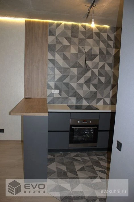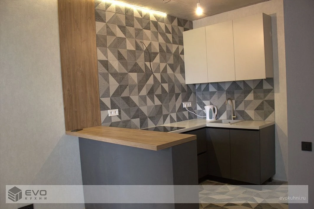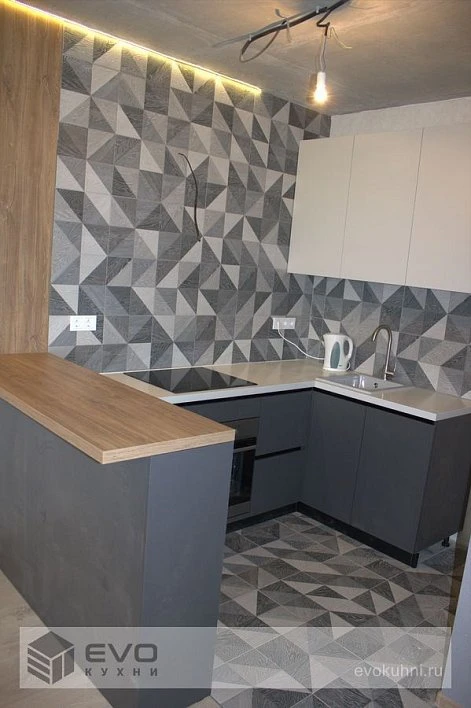 Кухня модерн Egger ЛДСП пепел / диамант серый U963 с баром ЛМ200102