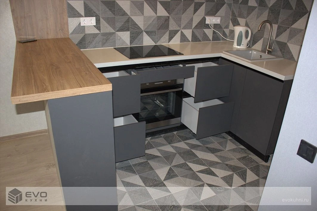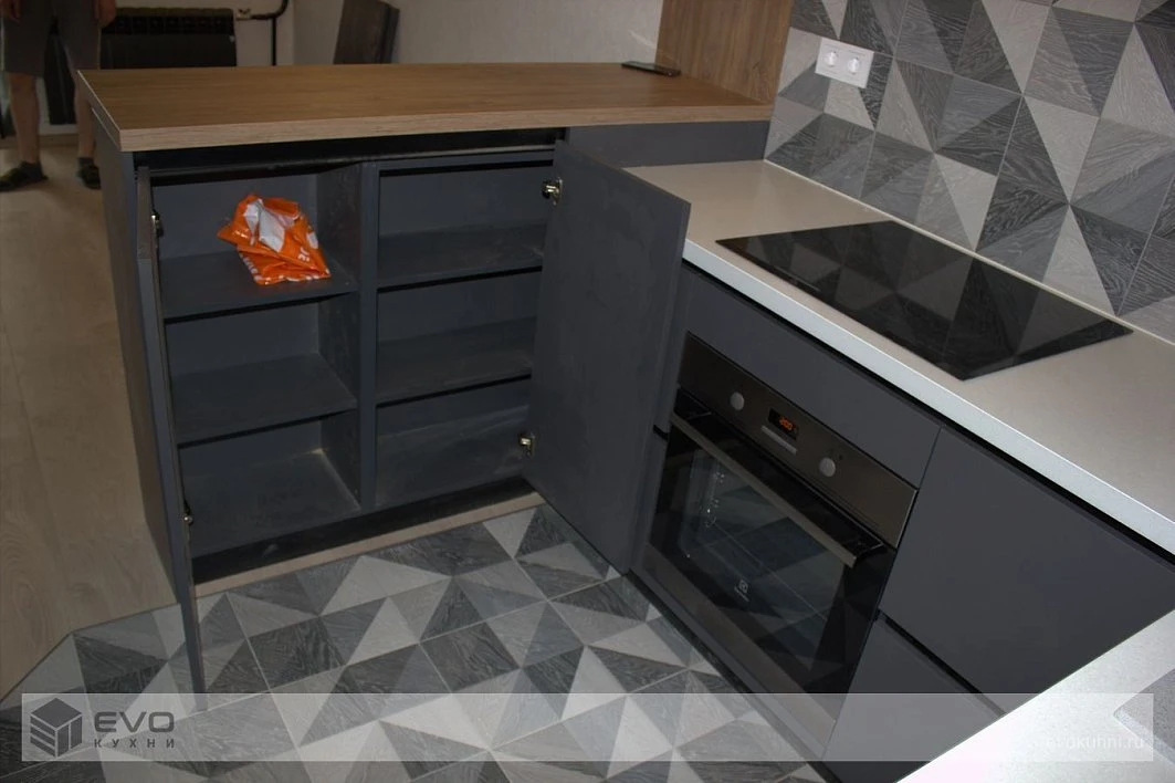 Кухни все изготавливаются по индивидуальному заказу. Мы подготовим дизайн-проект под любое помещение и конфигурацию. В зависимости от выбранных фасадов сможем изготовить нестандартные модули и размеры. Однако есть редкие исключения видов фасадов, по которым невозможны нестандарты, об этом вас предупредит дизайнер при выборе материалов для проекта.