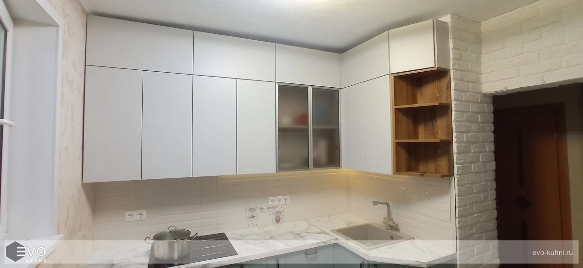 Кухни все изготавливаются по индивидуальному заказу. Мы подготовим дизайн-проект под любое помещение и конфигурацию. В зависимости от выбранных фасадов сможем изготовить нестандартные модули и размеры. Однако есть редкие исключения видов фасадов, по которым невозможны нестандарты, об этом вас предупредит дизайнер при выборе материалов для проекта.