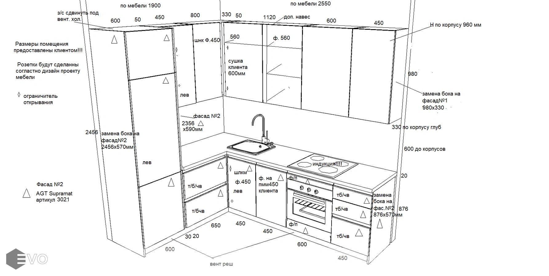 Кухни все изготавливаются по индивидуальному заказу. Мы подготовим дизайн-проект под любое помещение и конфигурацию. В зависимости от выбранных фасадов сможем изготовить нестандартные модули и размеры. Однако есть редкие исключения видов фасадов, по которым невозможны нестандарты, об этом вас предупредит дизайнер при выборе материалов для проекта.
