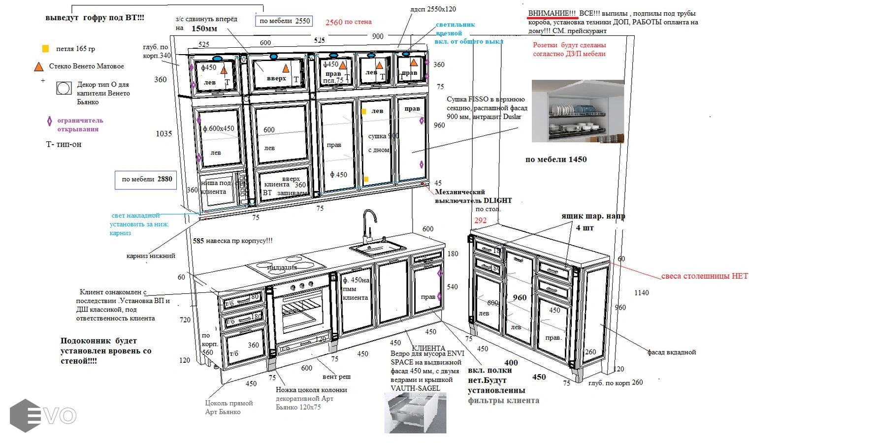 Дизайн-проект, максимально удовлетворяющий вашим пожеланиям, мы делаем бесплатно. Наши менеджеры-дизайнеры помогут вам определиться с моделью вашей будущей кухни, грамотно подберут встраиваемую технику, подберут цветовую гамму самой кухни исходя из стилистики интерьера и пожеланий клиента, составят технически грамотный проект под размеры помещения.