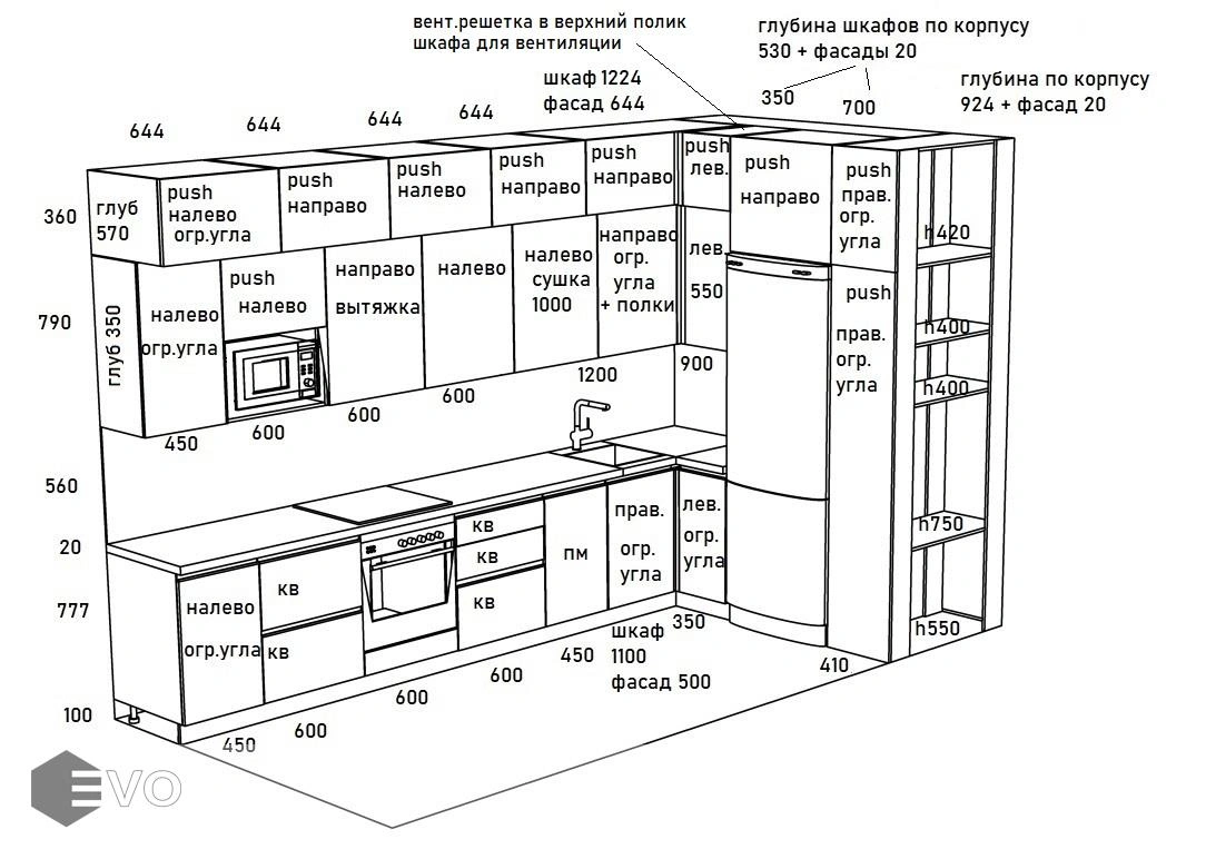 Кухни все изготавливаются по индивидуальному заказу. Мы подготовим дизайн-проект под любое помещение и конфигурацию. В зависимости от выбранных фасадов сможем изготовить нестандартные модули и размеры. Однако есть редкие исключения видов фасадов, по которым невозможны нестандарты, об этом вас предупредит дизайнер при выборе материалов для проекта.
