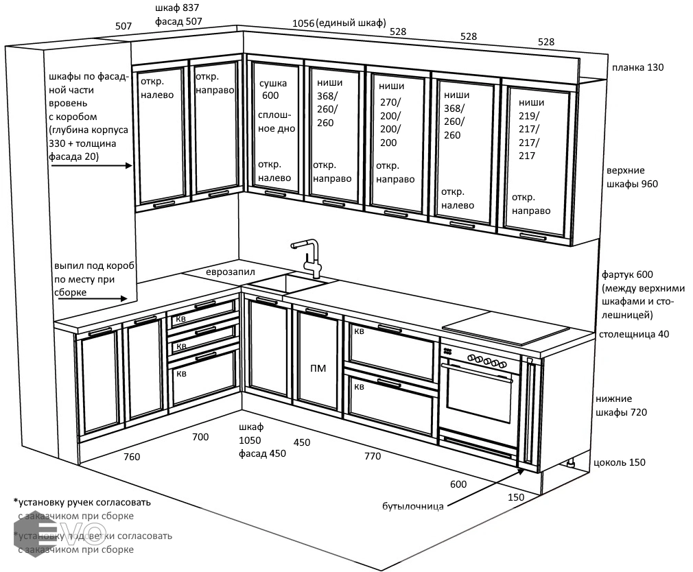 Дизайн-проект, максимально удовлетворяющий вашим пожеланиям, мы делаем бесплатно. Наши менеджеры-дизайнеры помогут вам определиться с моделью вашей будущей кухни, грамотно подберут встраиваемую технику, подберут цветовую гамму самой кухни исходя из стилистики интерьера и пожеланий клиента, составят технически грамотный проект под размеры помещения.