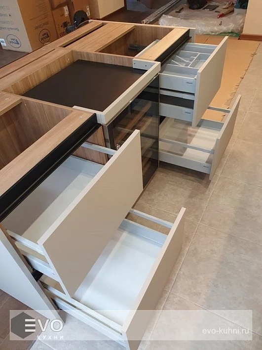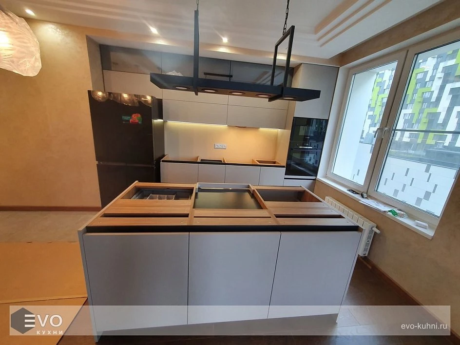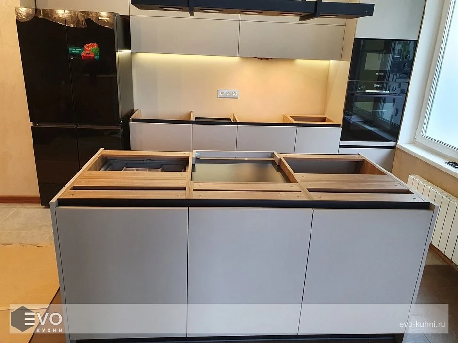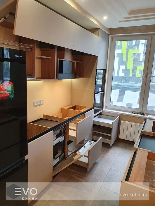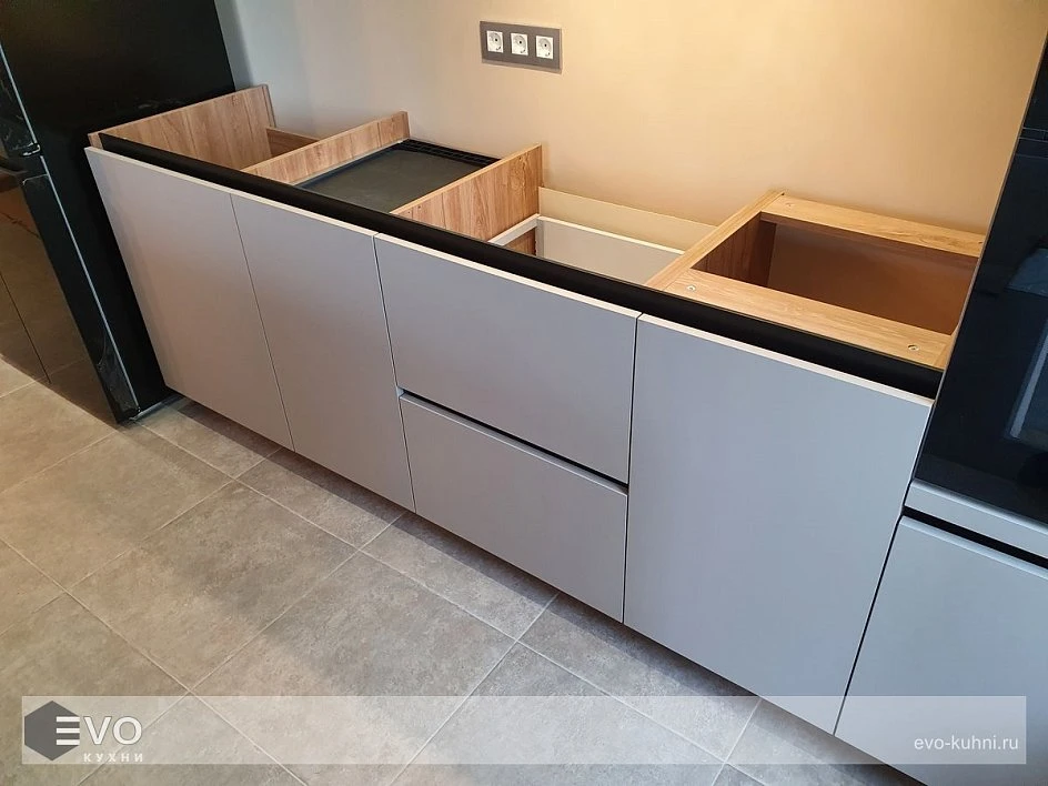 Кухни все изготавливаются по индивидуальному заказу. Мы подготовим дизайн-проект под любое помещение и конфигурацию. В зависимости от выбранных фасадов сможем изготовить нестандартные модули и размеры. Однако есть редкие исключения видов фасадов, по которым невозможны нестандарты, об этом вас предупредит дизайнер при выборе материалов для проекта.