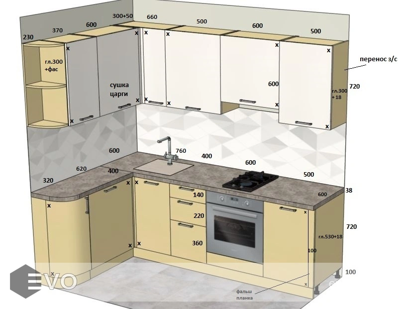 Кухни все изготавливаются по индивидуальному заказу. Мы подготовим дизайн-проект под любое помещение и конфигурацию. В зависимости от выбранных фасадов сможем изготовить нестандартные модули и размеры. Однако есть редкие исключения видов фасадов, по которым невозможны нестандарты, об этом вас предупредит дизайнер при выборе материалов для проекта.