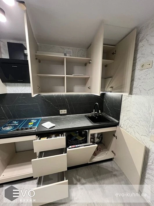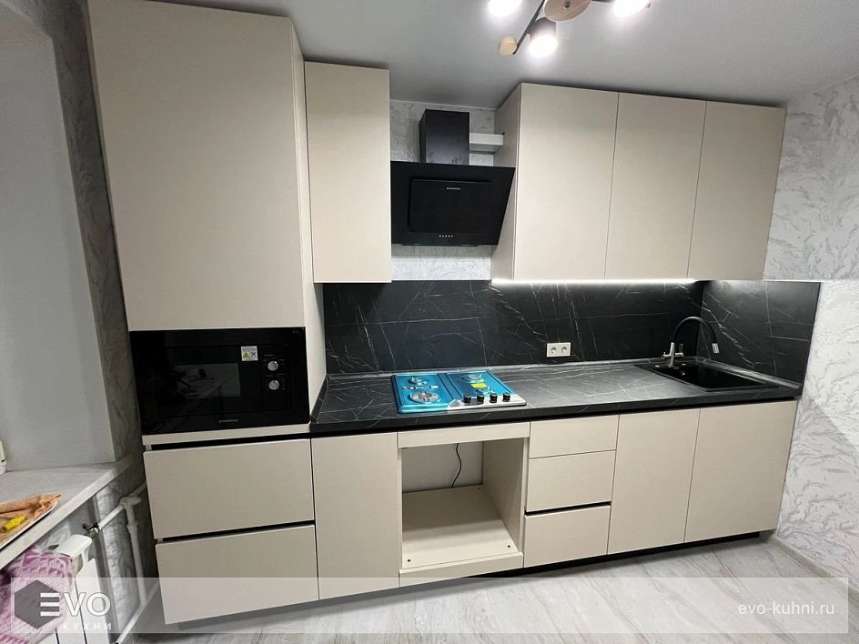 Кухни все изготавливаются по индивидуальному заказу. Мы подготовим дизайн-проект под любое помещение и конфигурацию. В зависимости от выбранных фасадов сможем изготовить нестандартные модули и размеры. Однако есть редкие исключения видов фасадов, по которым невозможны нестандарты, об этом вас предупредит дизайнер при выборе материалов для проекта.