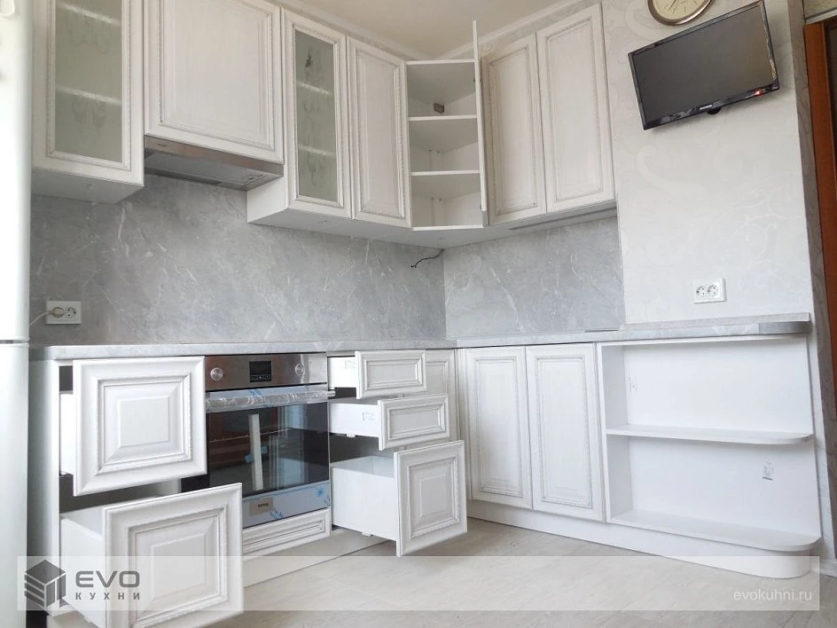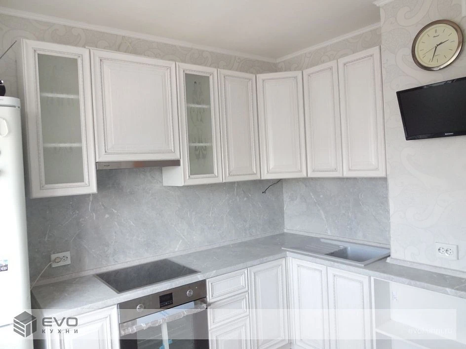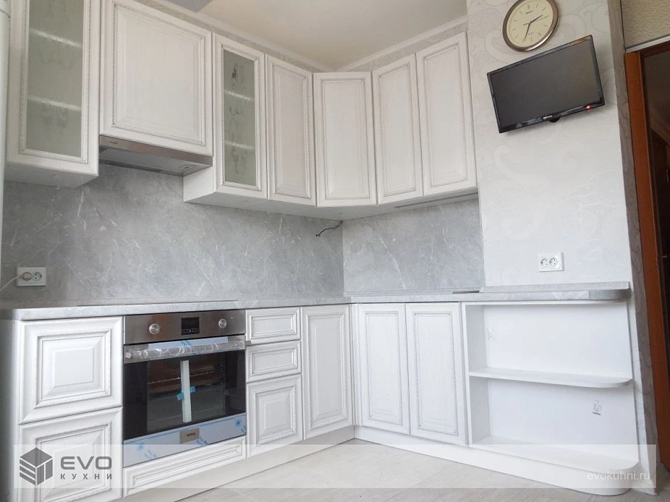 Угловая кухня неоклассика Лоренцо пленка/МДФ с патиной РЯ180614