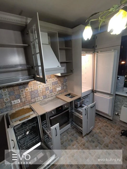 Кухни все изготавливаются по индивидуальному заказу. Мы подготовим дизайн-проект под любое помещение и конфигурацию. В зависимости от выбранных фасадов сможем изготовить нестандартные модули и размеры. Однако есть редкие исключения видов фасадов, по которым невозможны нестандарты, об этом вас предупредит дизайнер при выборе материалов для проекта.