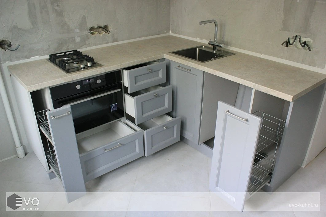 Кухни все изготавливаются по индивидуальному заказу. Мы подготовим дизайн-проект под любое помещение и конфигурацию. В зависимости от выбранных фасадов сможем изготовить нестандартные модули и размеры. Однако есть редкие исключения видов фасадов, по которым невозможны нестандарты, об этом вас предупредит дизайнер при выборе материалов для проекта.