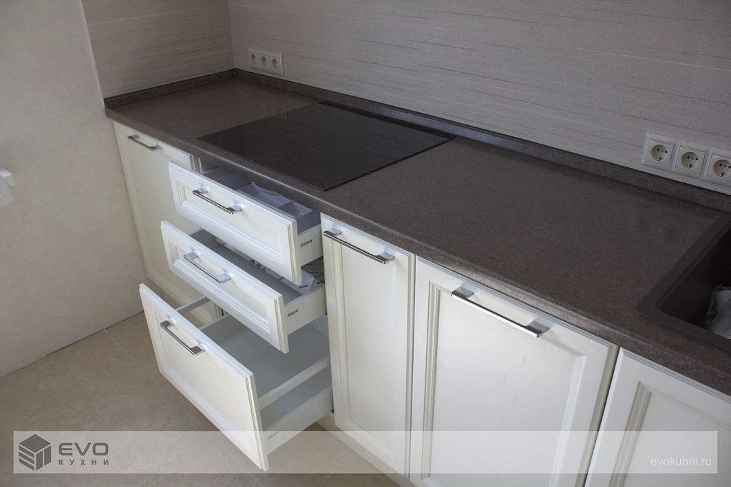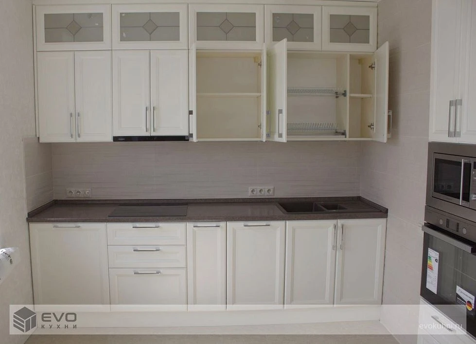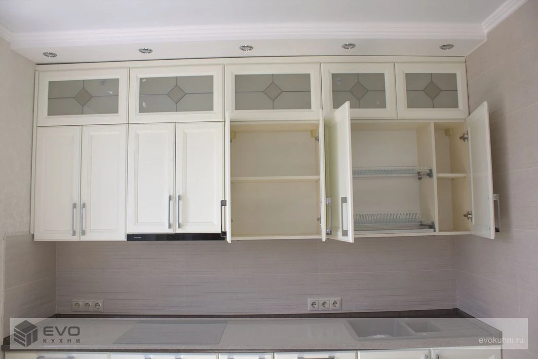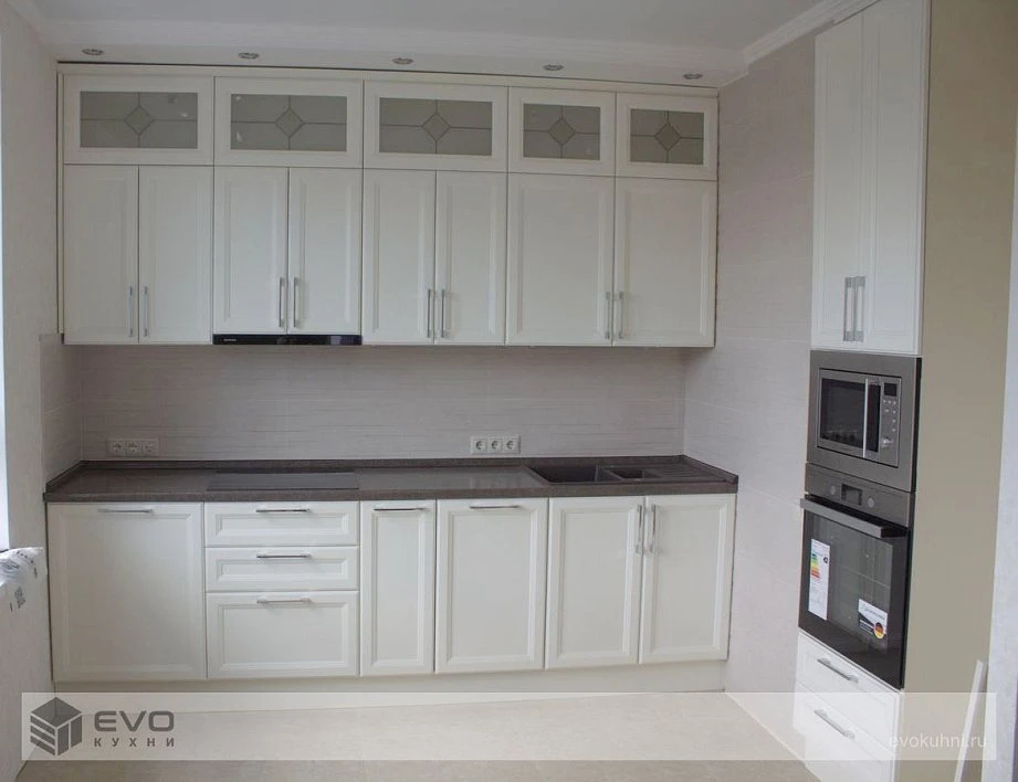 Кухни все изготавливаются по индивидуальному заказу. Мы подготовим дизайн-проект под любое помещение и конфигурацию. В зависимости от выбранных фасадов сможем изготовить нестандартные модули и размеры. Однако есть редкие исключения видов фасадов, по которым невозможны нестандарты, об этом вас предупредит дизайнер при выборе материалов для проекта.