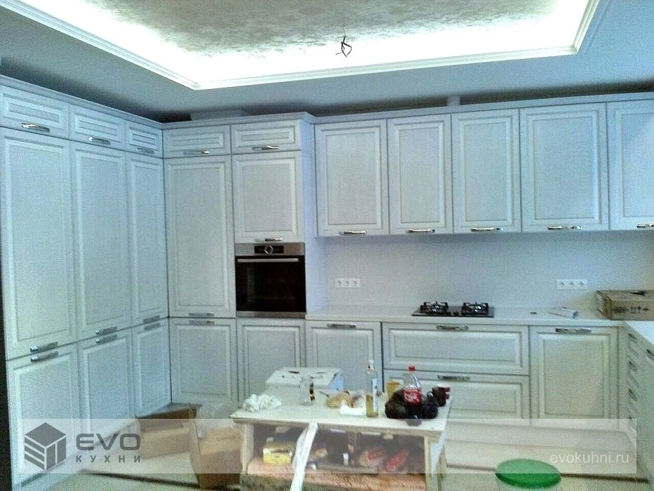 П-образная кухня с отдельно стоящим шкафом неоклассика Массив дуба