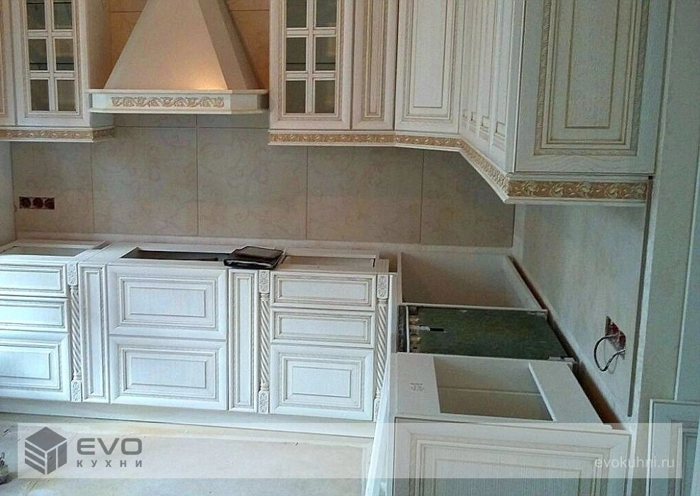 Угловая кухня неоклассика Массив ясеня с золотой патиной