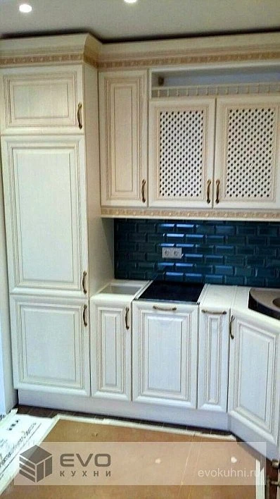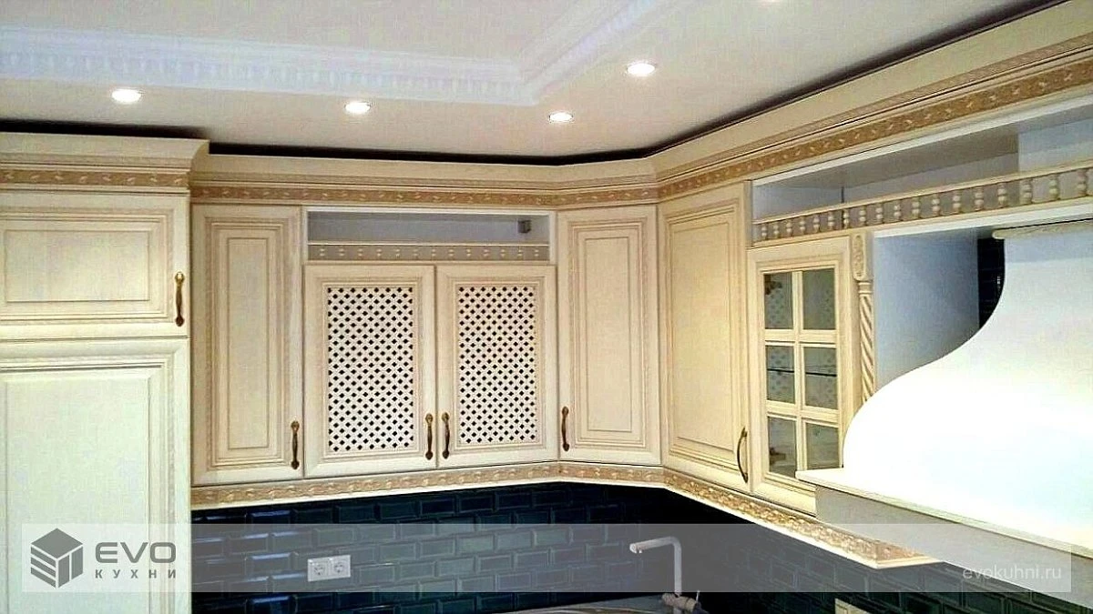 Угловая кухня прованс Массив ясеня с золотой патиной
