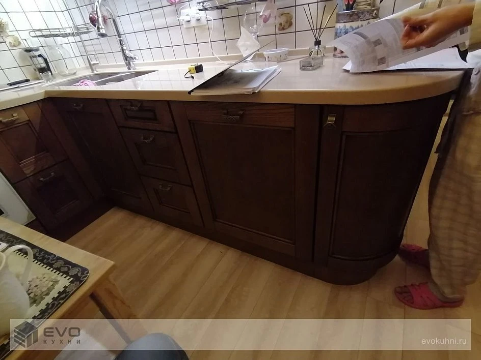 Угловая кухня неоклассика массив Ясеня Т505 цвет 102 темная ЛМ200805
