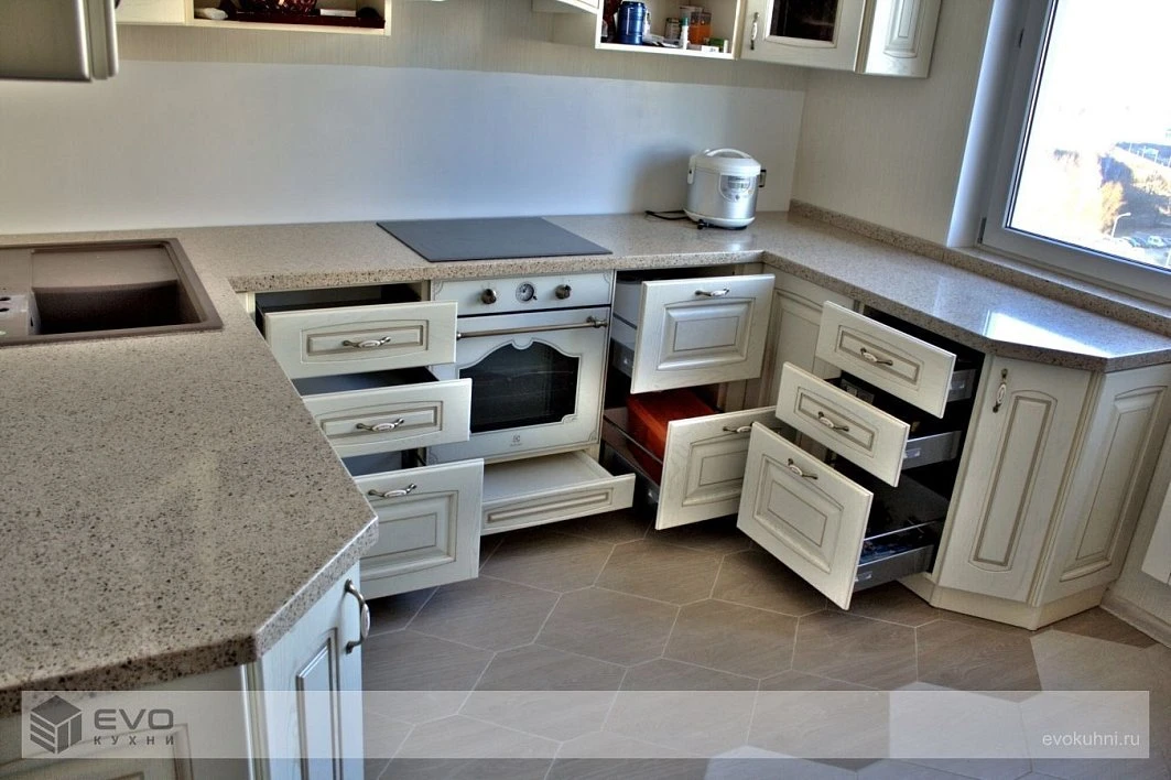 Кухни все изготавливаются по индивидуальному заказу. Мы подготовим дизайн-проект под любое помещение и конфигурацию. В зависимости от выбранных фасадов сможем изготовить нестандартные модули и размеры. Однако есть редкие исключения видов фасадов, по которым невозможны нестандарты, об этом вас предупредит дизайнер при выборе материалов для проекта.