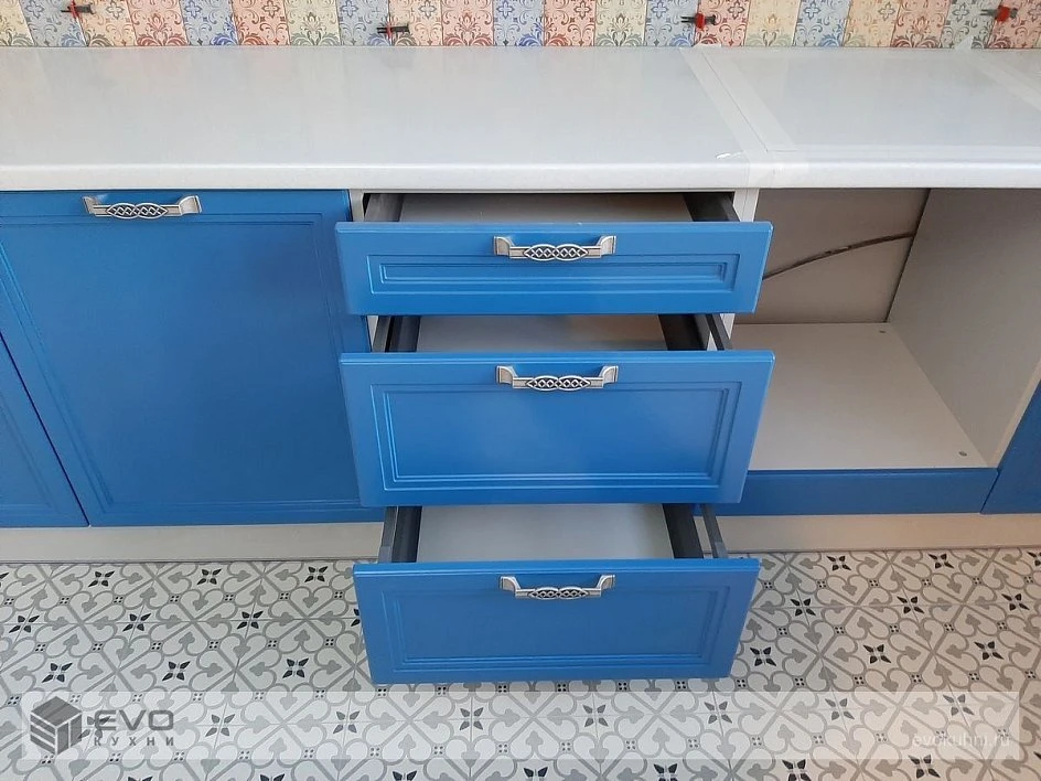 Кухни все изготавливаются по индивидуальному заказу. Мы подготовим дизайн-проект под любое помещение и конфигурацию. В зависимости от выбранных фасадов сможем изготовить нестандартные модули и размеры. Однако есть редкие исключения видов фасадов, по которым невозможны нестандарты, об этом вас предупредит дизайнер при выборе материалов для проекта.