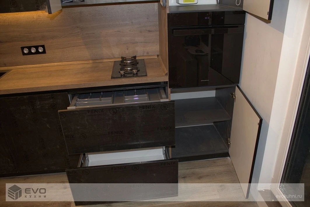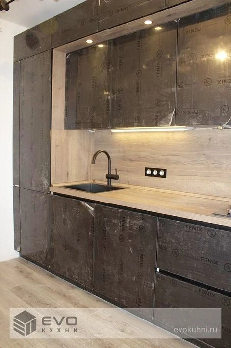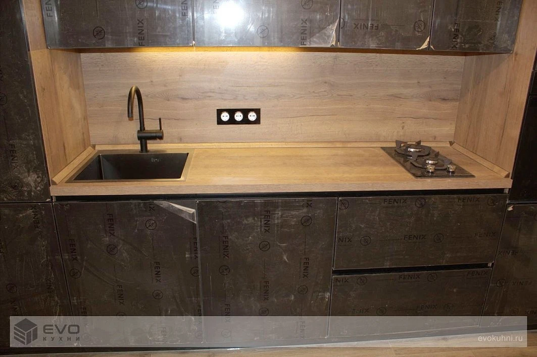 Прямая кухня модерн Fennix Nero Ingro пластик/МДФ ЛЛ190801
